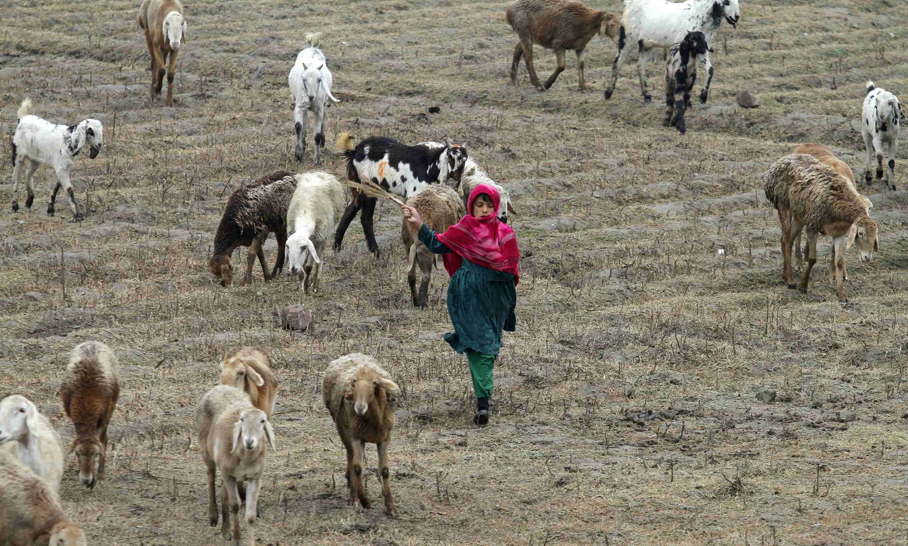 A nomad girl runs while grazing her family's goats and seeps on the outskirts of Peshawar January 22, 2015. (Photo by Fayaz Aziz/Reuters)