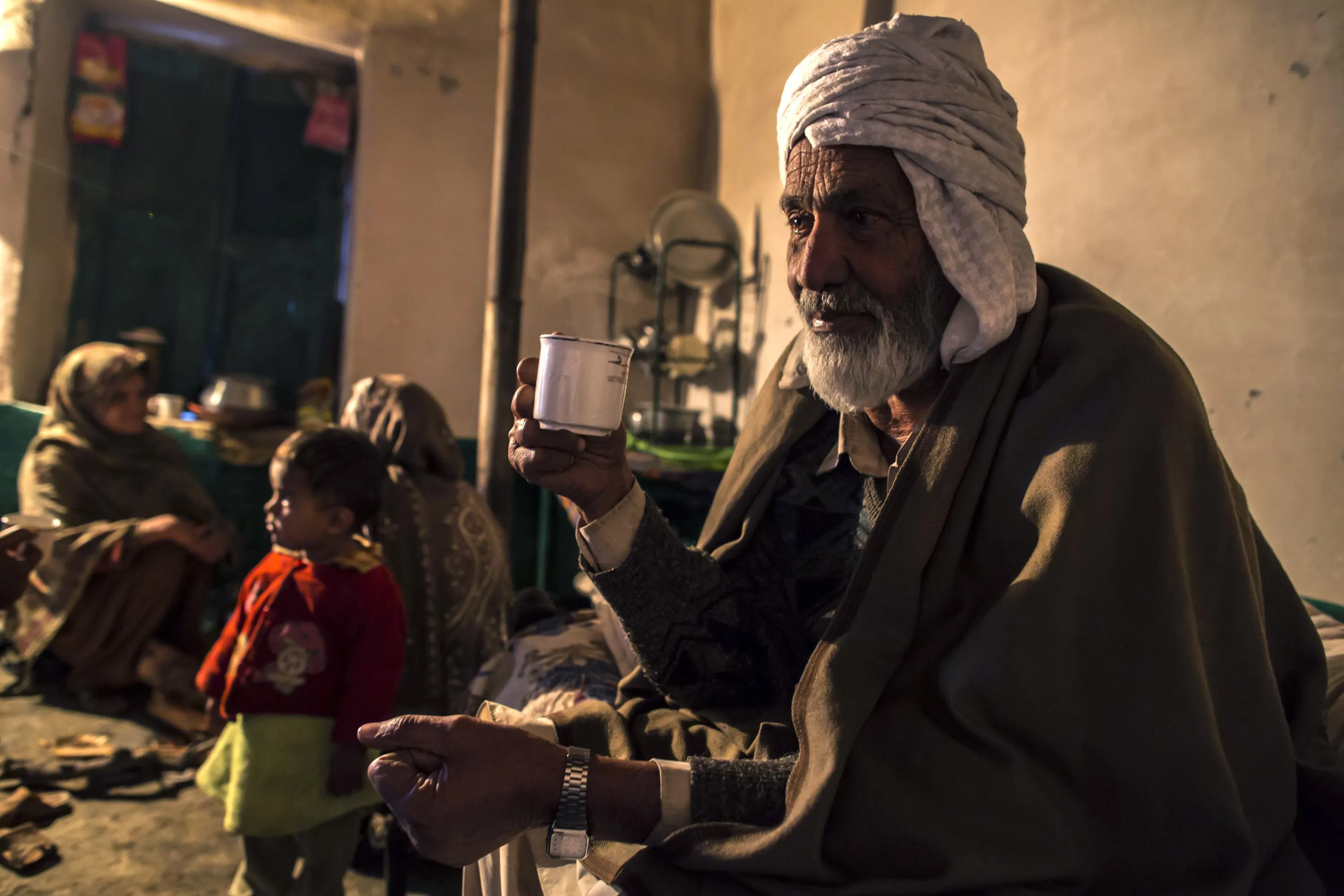 A man holds a cup of tea while he sits with his family at their house on Margalla Hills in Islamabad January 22, 2015. (Photo by Zohra Bensemra/Reuters)