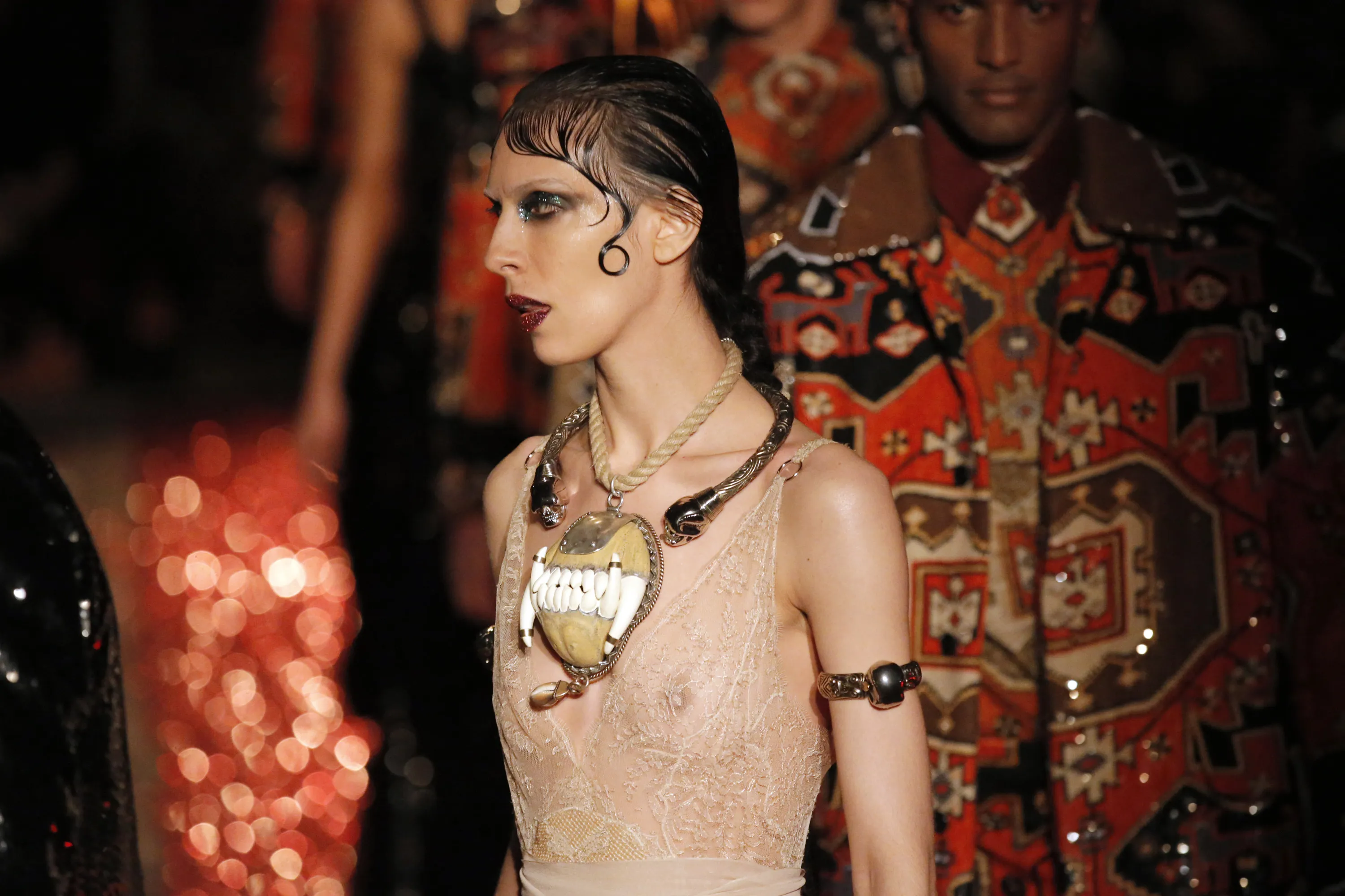 A model presents a creation for Givenchy by Italian fashion designer Riccardo Tisci during his men's fall-winter 2015/2016 fashion collection presented in Paris, France, Friday, January 23, 2015. (Photo by Francois Mori/AP Photo)