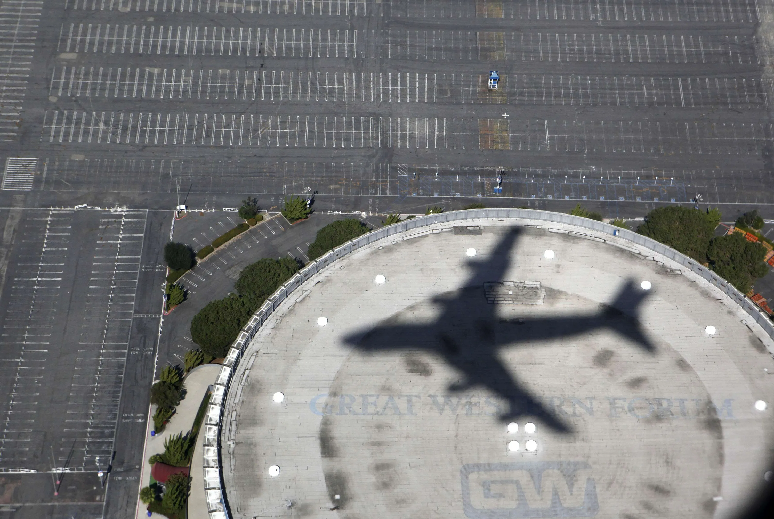Air Force One casts a shadow over The Forum in Inglewood as it prepares to land in Los Angeles carrying U.S. President Barack Obama as he begins a three day campaign swing to California and Ohio, in this October 7, 2012 file photo. (Photo by Larry Downing/Reuters)