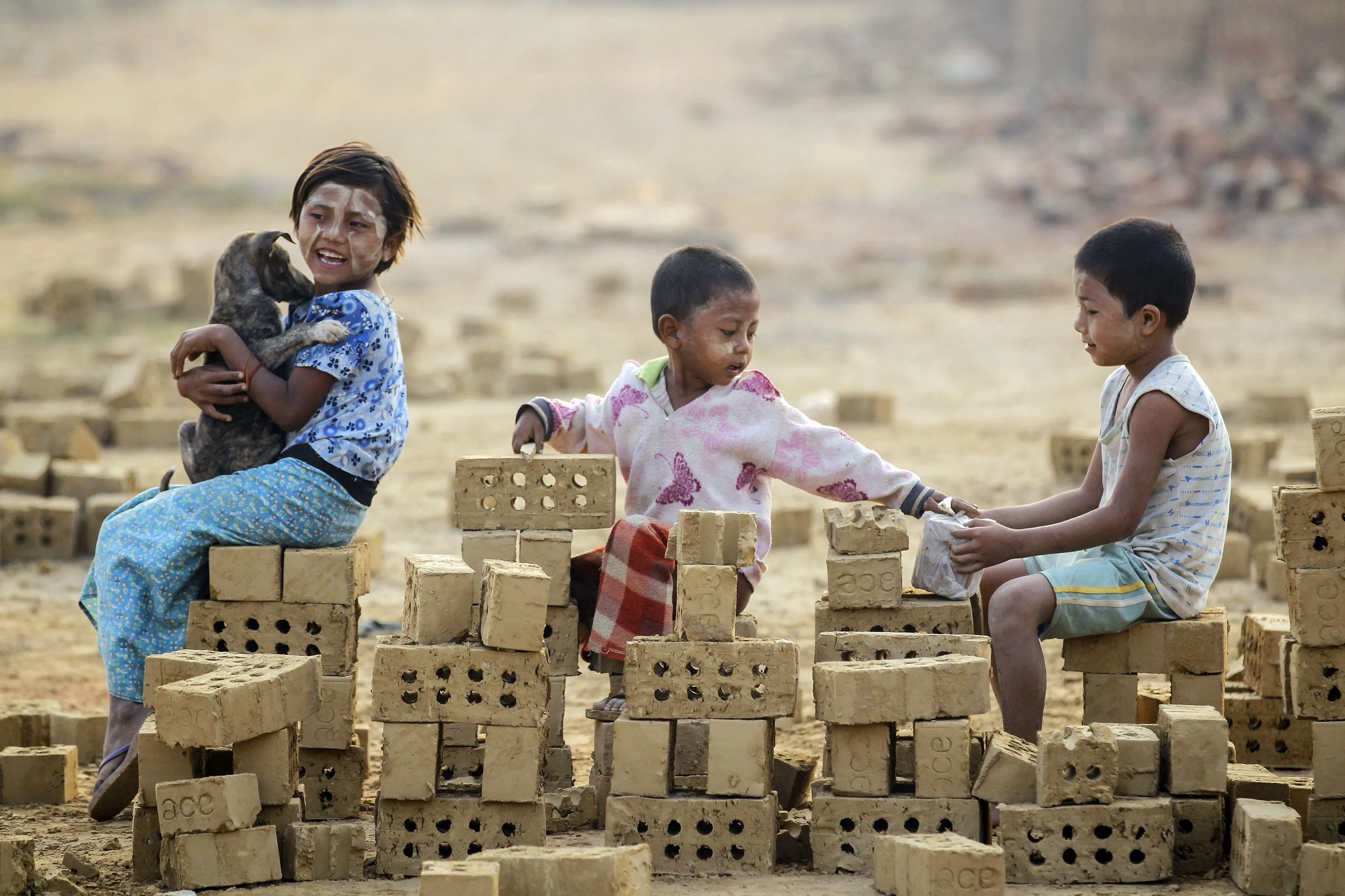 Children play on bricks while their parents work at a brick kiln on the outskirts of Yangon February 1, 2015. (Photo by Soe Zeya Tun/Reuters)