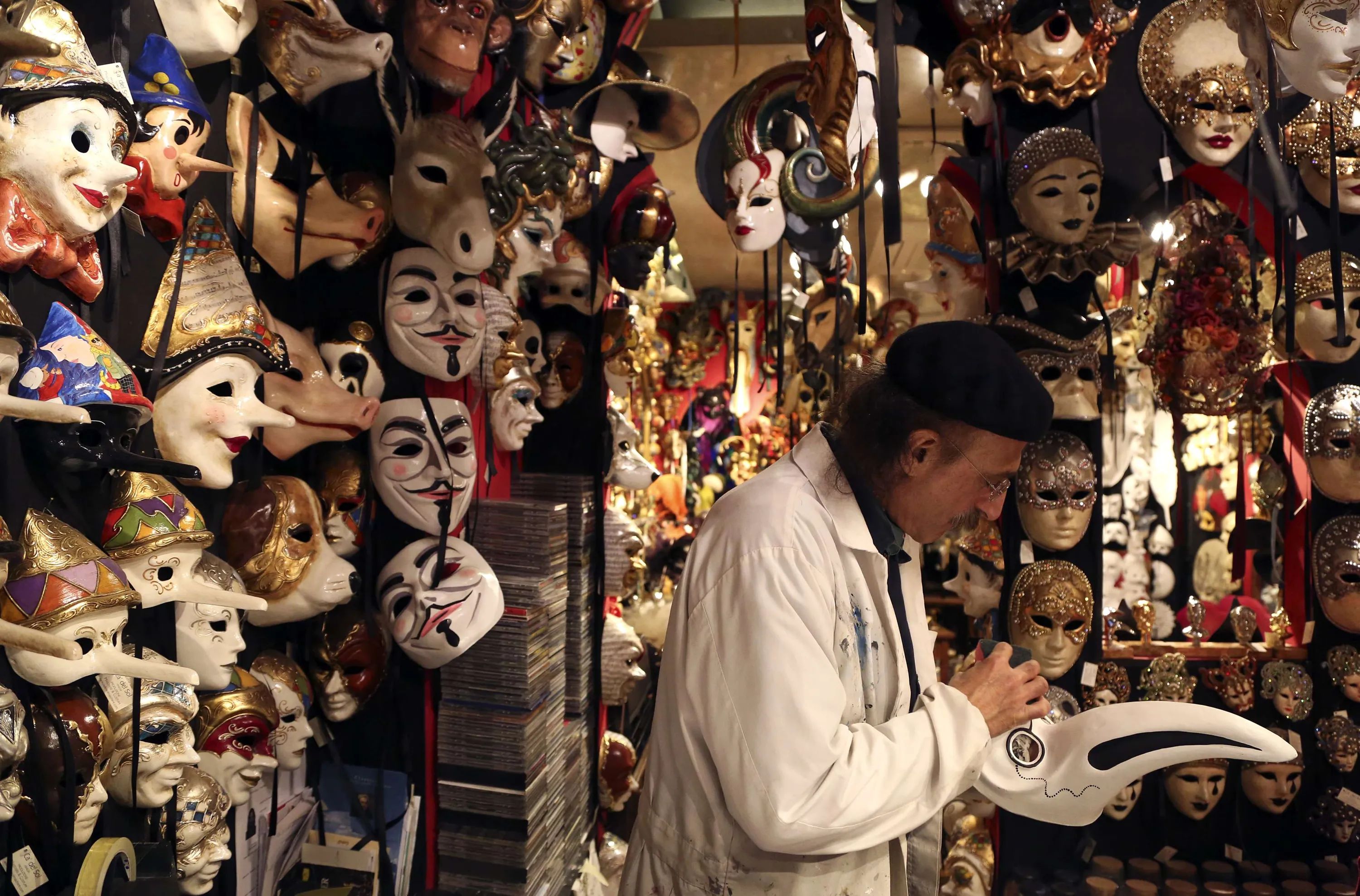 Iranian mask artisan Hamid works on a carnival mask in his shop “Ca' del Sol” near St. Mark's square during the first day of carnival in Venice February 1, 2015. (Photo by Stefano Rellandini/Reuters)