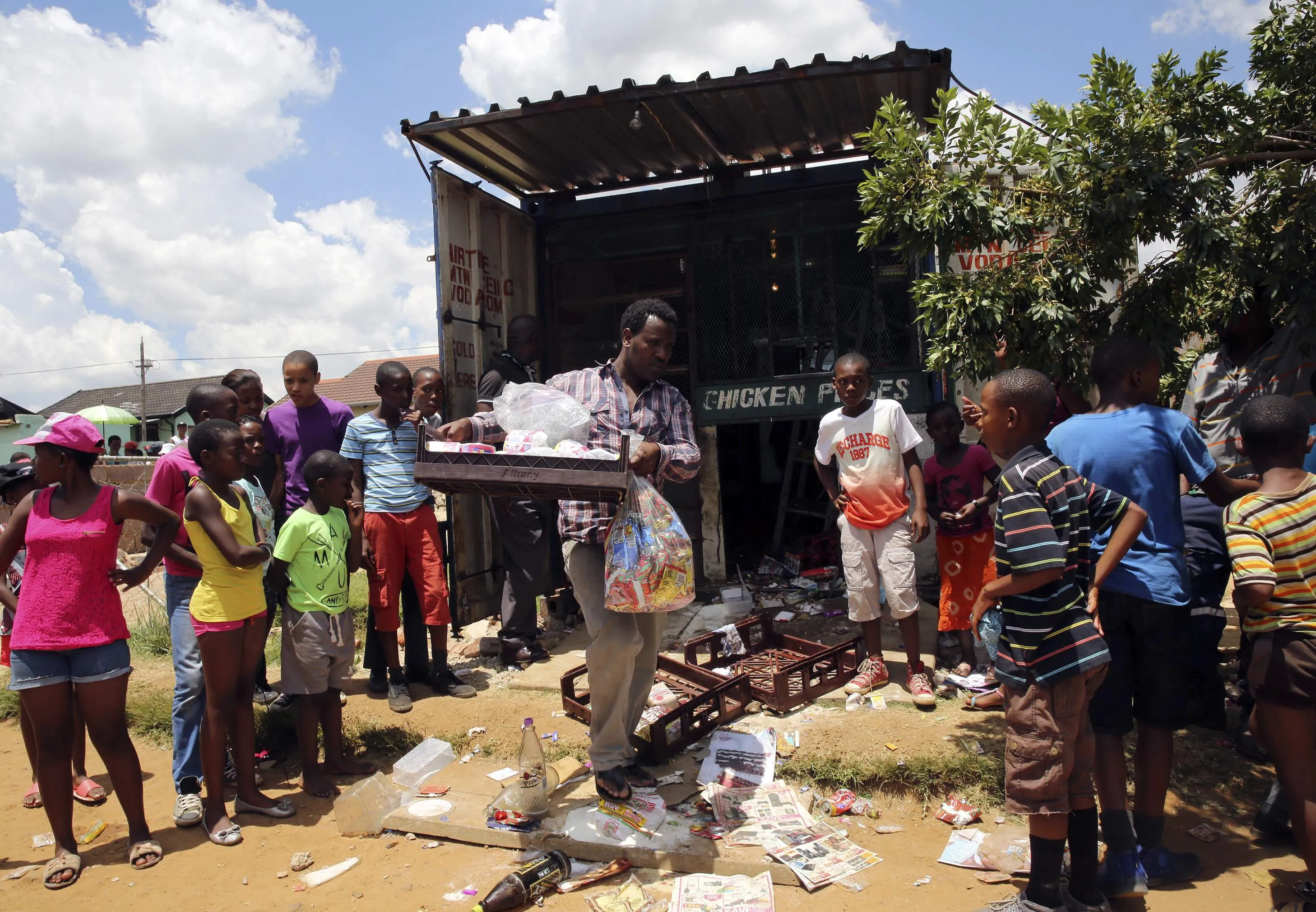 A foreign shop owner (C) collects what remains from his shop after it was looted during service delivery protests in Mohlakeng, west of Johannesburg, February 4, 2015. (Photo by Siphiwe Sibeko/Reuters)