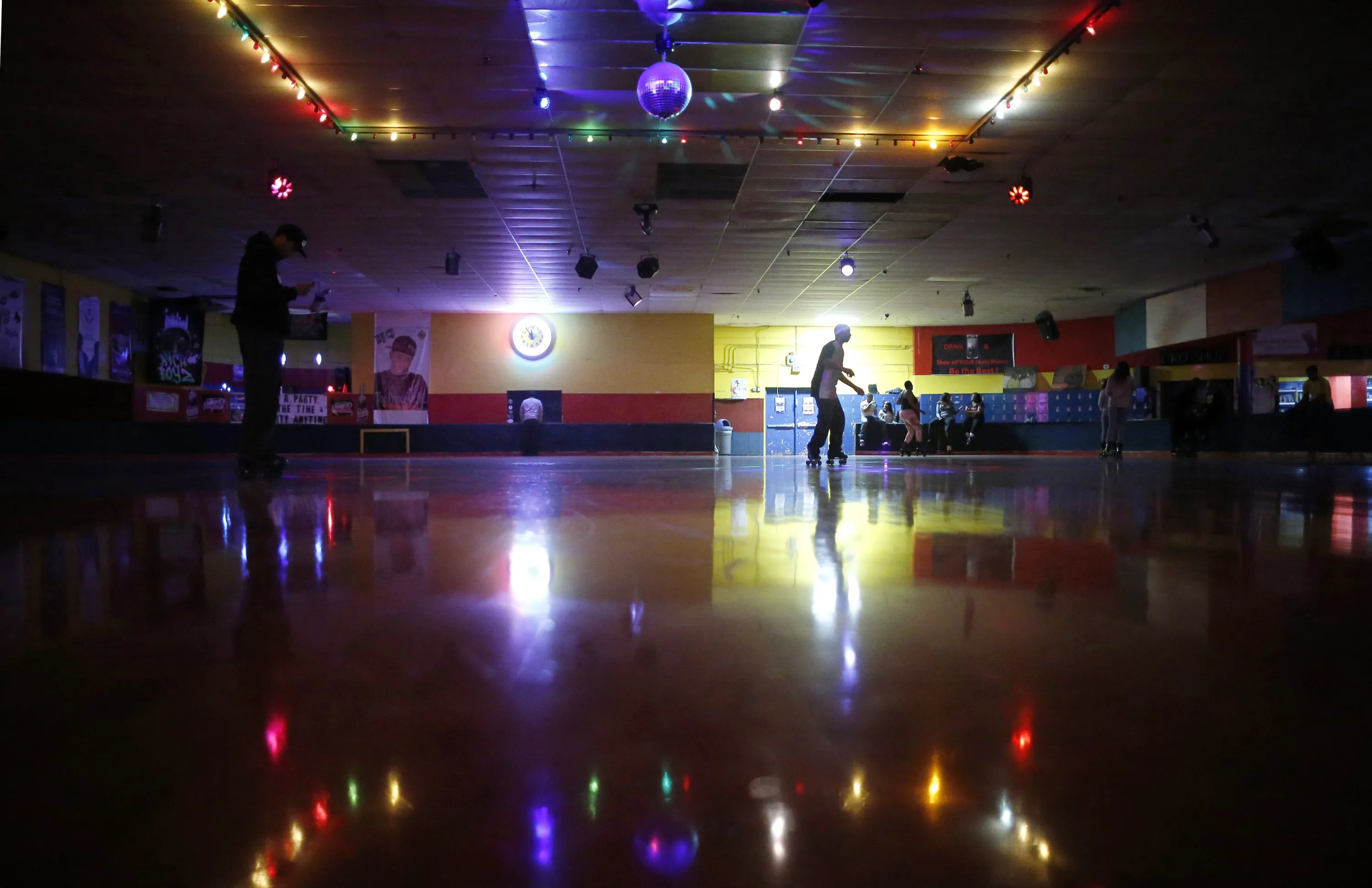 A man is reflected in the floor at “Rich City Skate” as he roller skates in Richton Park, Illinois, January 12, 2015. (Photo by Jim Young/Reuters)