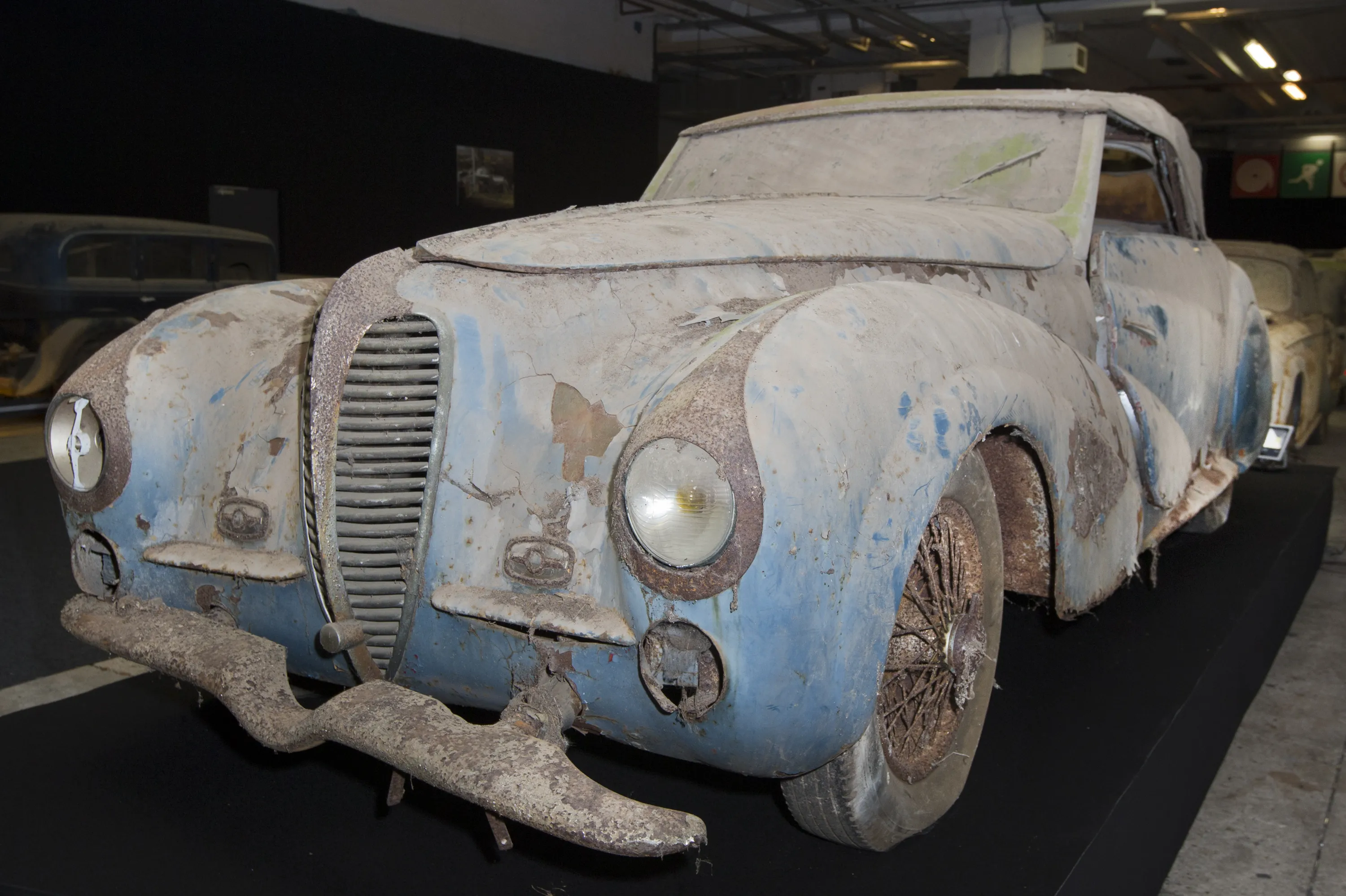 A Delahaye 135-M cabriolet Faget-Varnet is displayed during a preview for an auction of vintage cars Retromobile show in Paris, Tuesday, February 3, 2015, after a treasure trove of classic cars was discovered after spending 50-years languishing in storage on a farm. (Photo by Jacques Brinon/AP Photo)