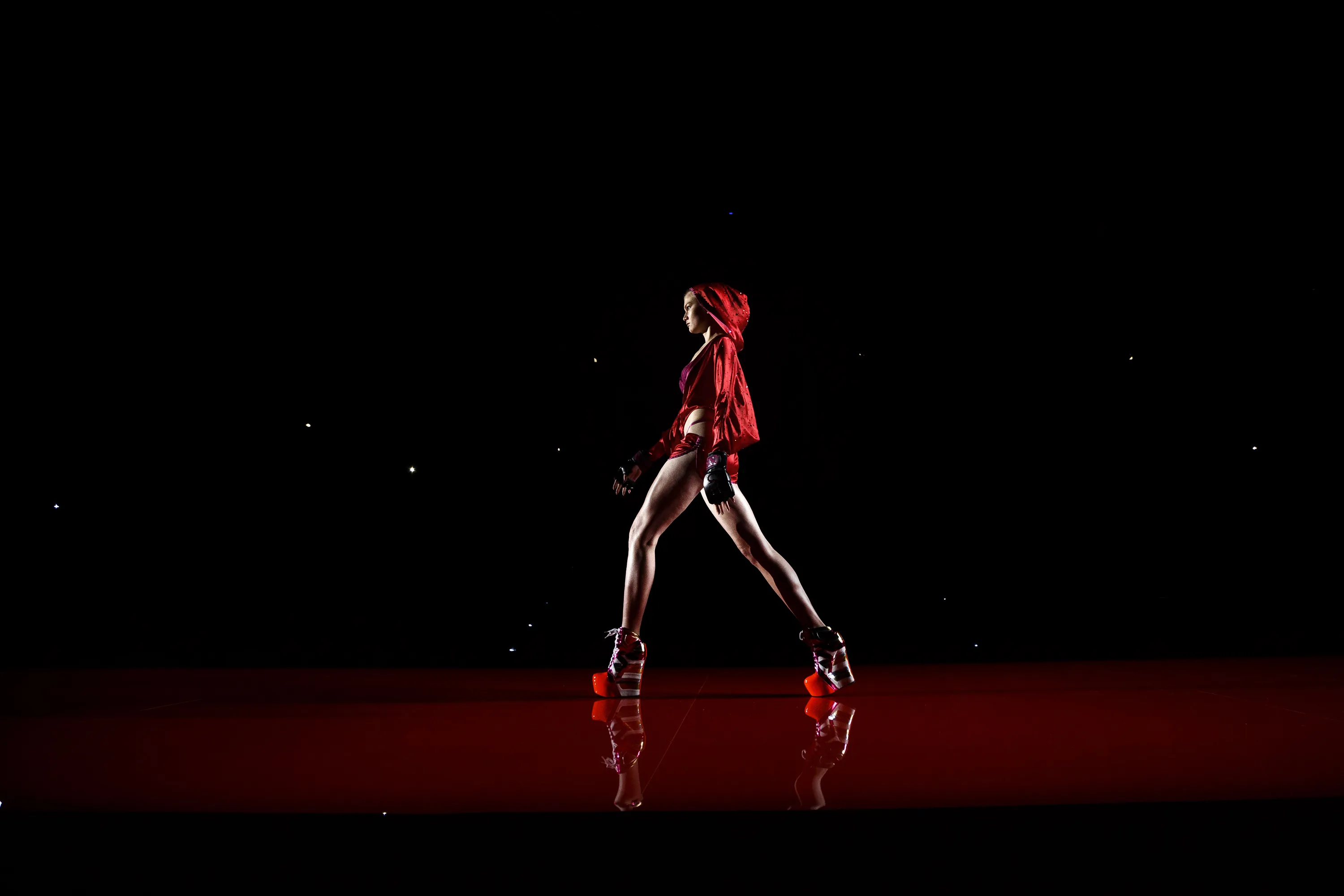 A model displays an Autumn/Winter design by Andres Sarda at Madrid's Fashion Week in Madrid, Spain, Saturday, February 7, 2015. (Photo by Daniel Ochoa de Olza/AP Photo)