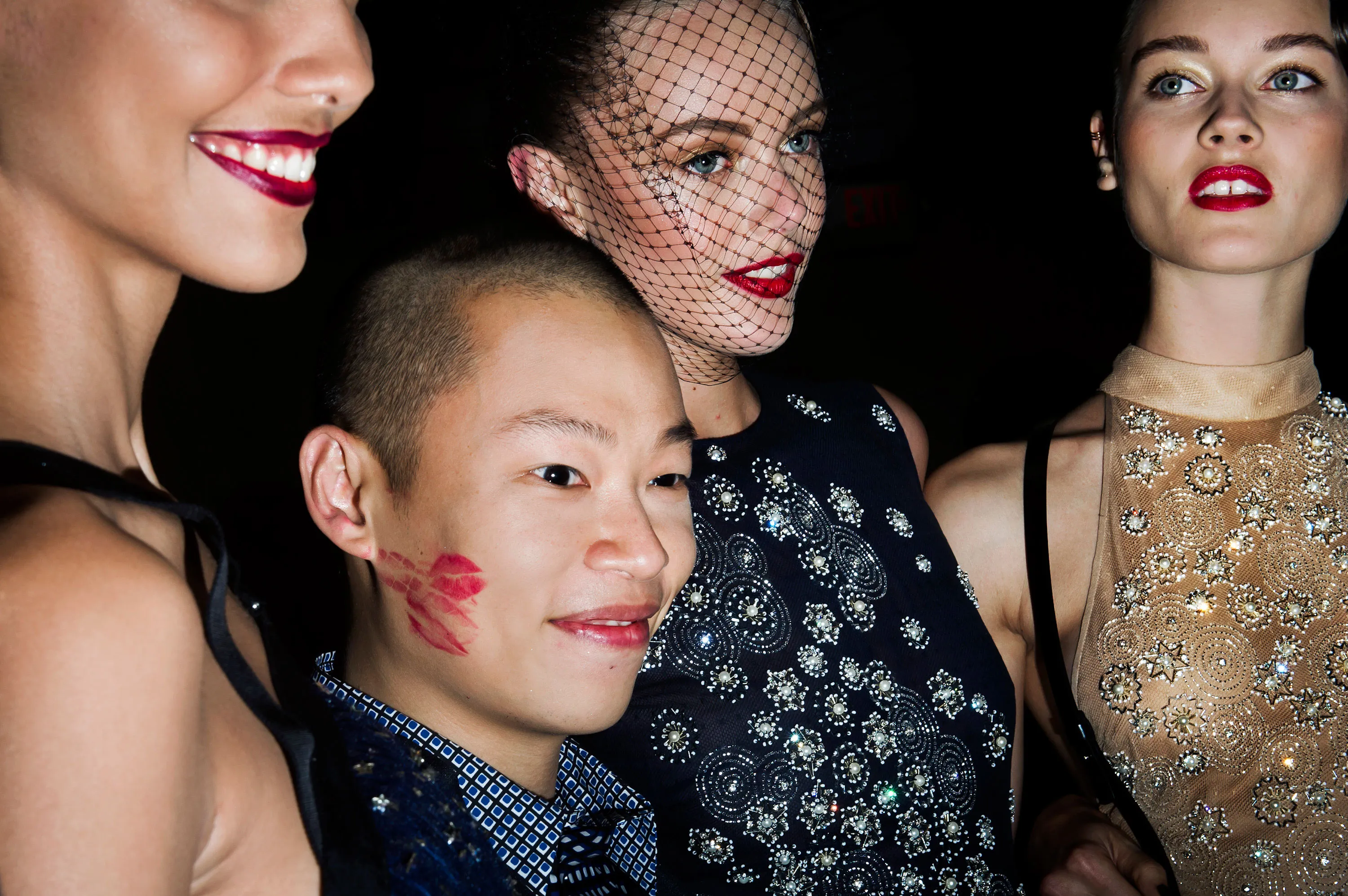 Designer Jason Wu and models pose for photographers after his Spring 2013 show in New York City. From the series “Fashion Lust”. (Photo by Dina Litovsky)