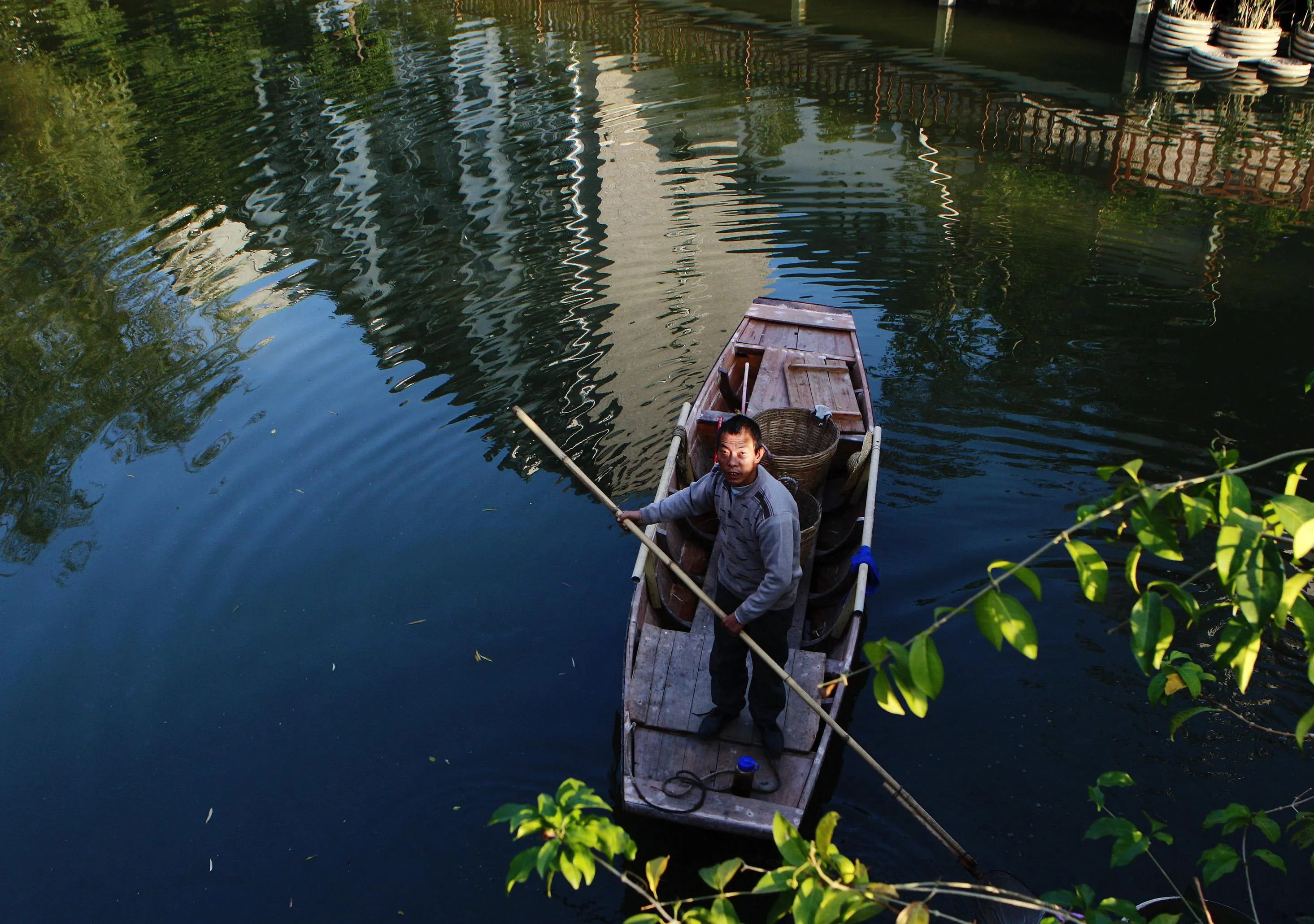A man picks up garbage from a canal in Guangzhou, Guangdong province, January 26, 2015. (Photo by Alex Lee/Reuters)