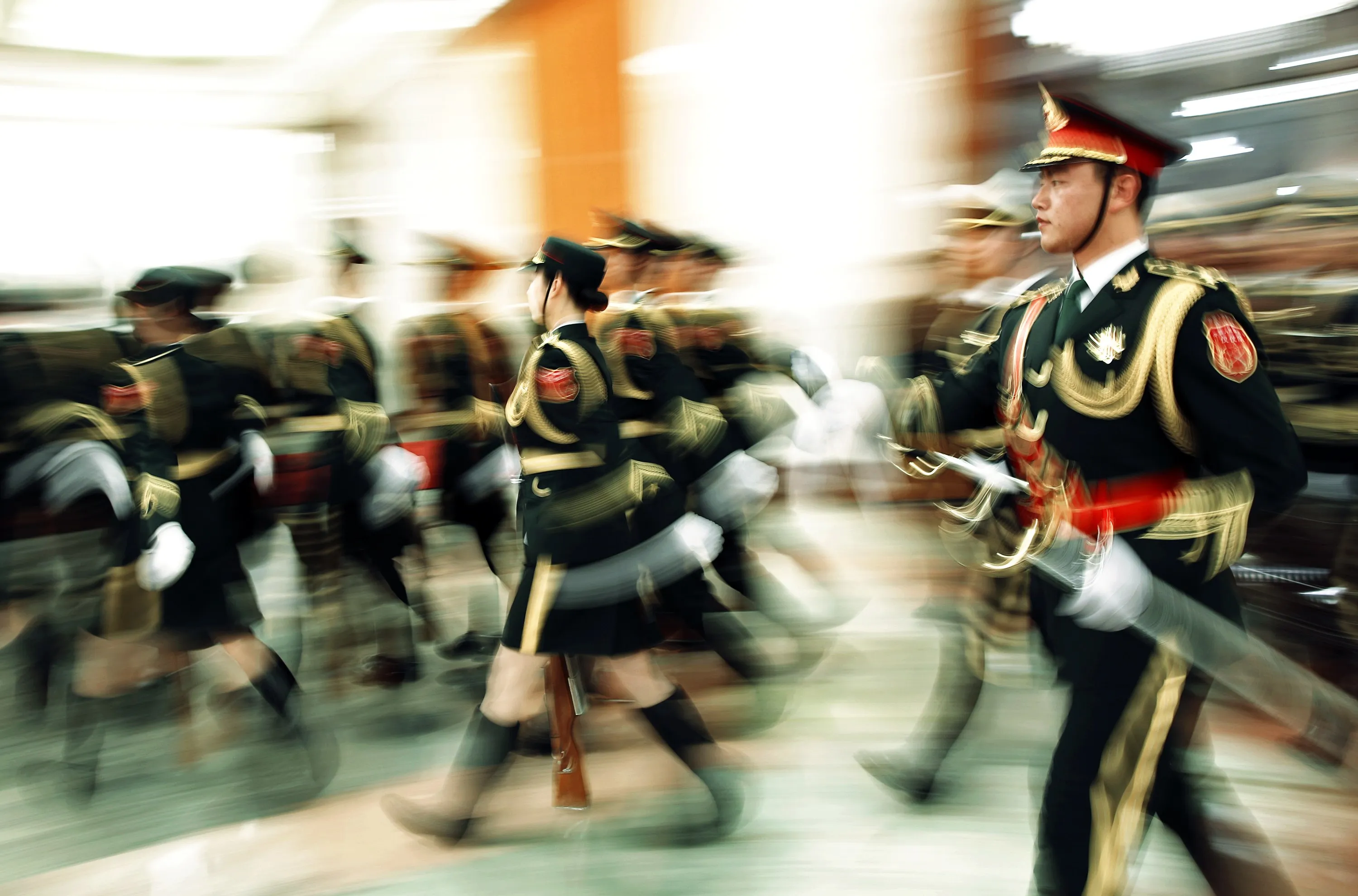 Members of the Chinese People's Liberation Army (PLA) honour guard enter a venue for a welcoming ceremony for Argentina's President Cristina Fernandez de Kirchner at the Great Hall of the People in Beijing February 4, 2015. (Photo by Kim Kyung-Hoon/Reuters)