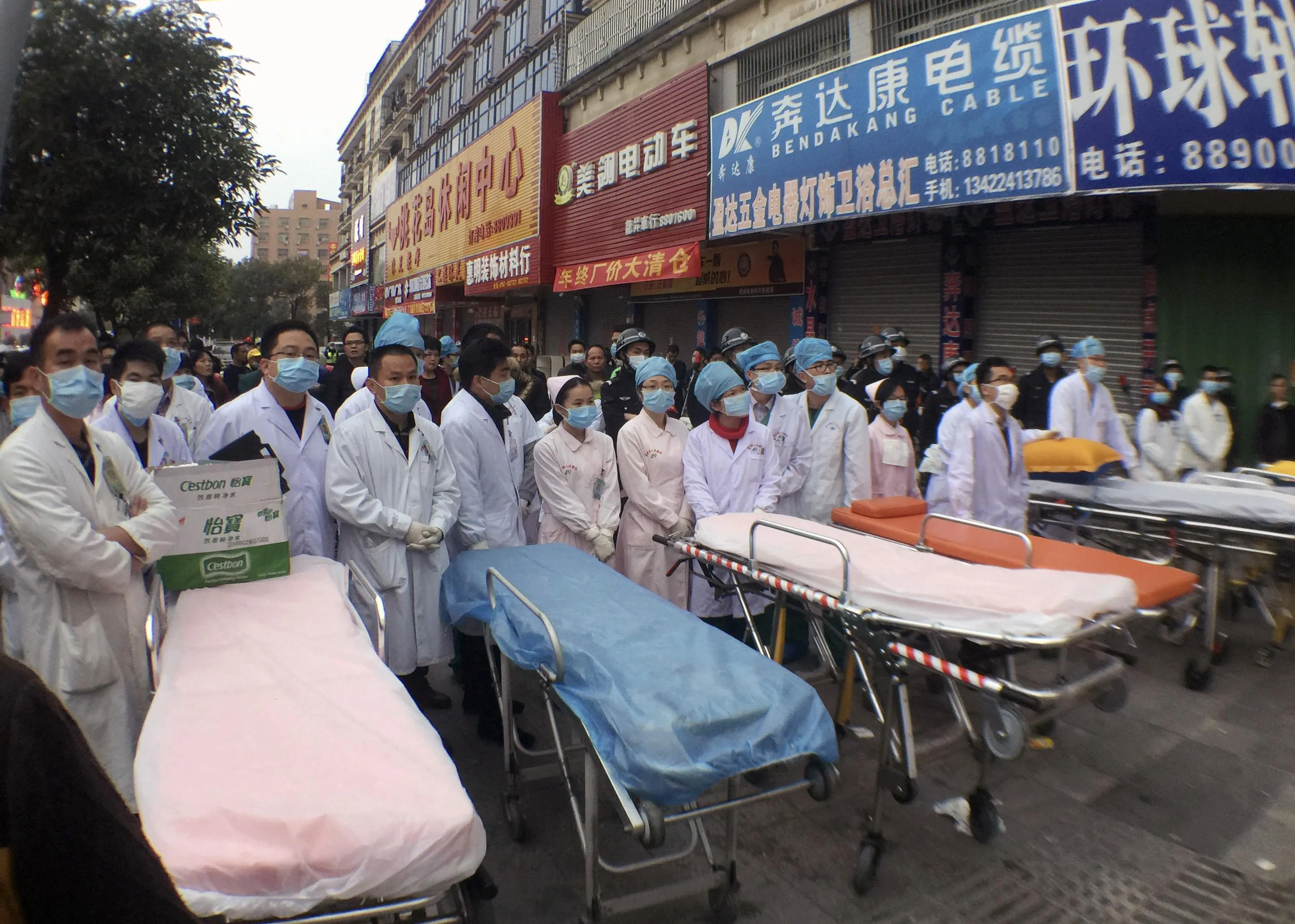 Medical personnel wait next to stretchers after a fire broke out at a wholesale market building in Huidong county, Guangdong province February 5, 2015. The fire at the warehouse in China has killed at least 17 people, state news agency Xinhua said on Friday, the latest disaster in a country with a poor record on work safety. The fire broke out at on Thursday afternoon on the fourth floor of a small wholesale market in Huidong county in the southern province of Guangdong, the report said. It took more than six hours for firefighters to bring the blaze under control, Xinhua added. It did not provide further details. (Photo by Reuters/Stringer)