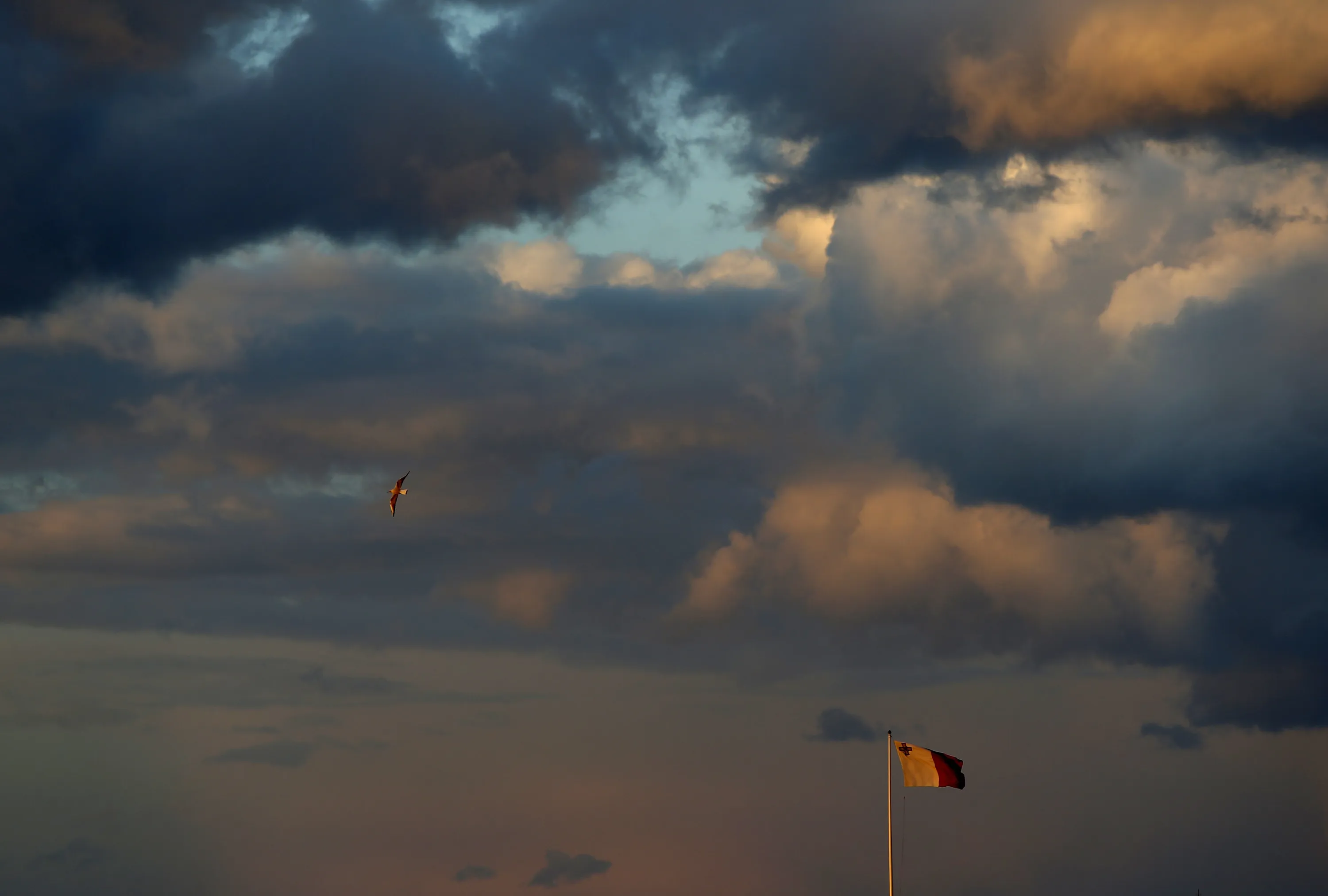 A seagull flies over a Maltese flag at sunset in Valletta, Malta, January 28, 2015. (Photo by Darrin Zammit/Reuters)