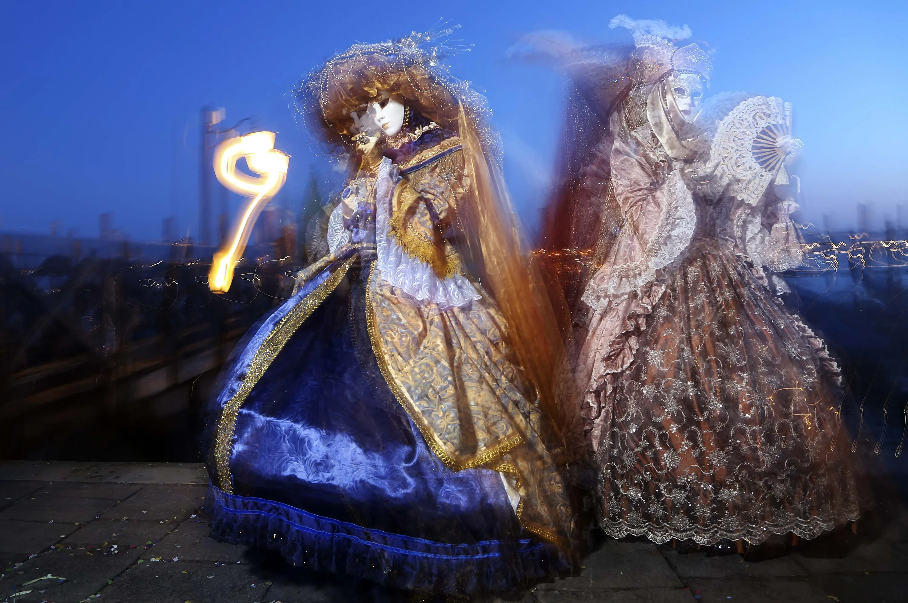Masked revellers pose in front of St. Mark's Square during the Venice Carnival, February 7, 2015. (Photo by Stefano Rellandini/Reuters)