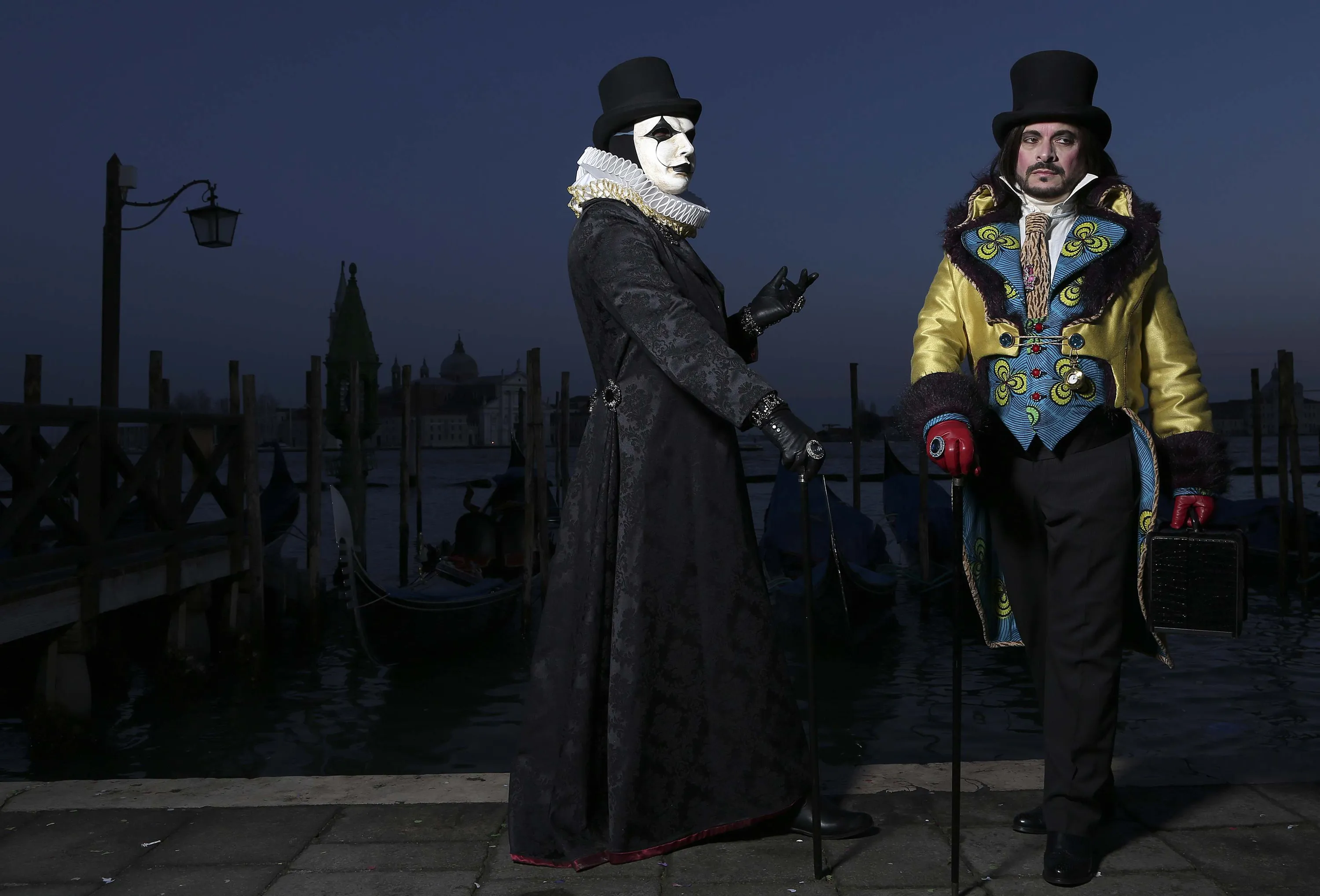 Revellers pose in front of St. Mark's Square during the Venice Carnival, February 7, 2015. (Photo by Stefano Rellandini/Reuters)