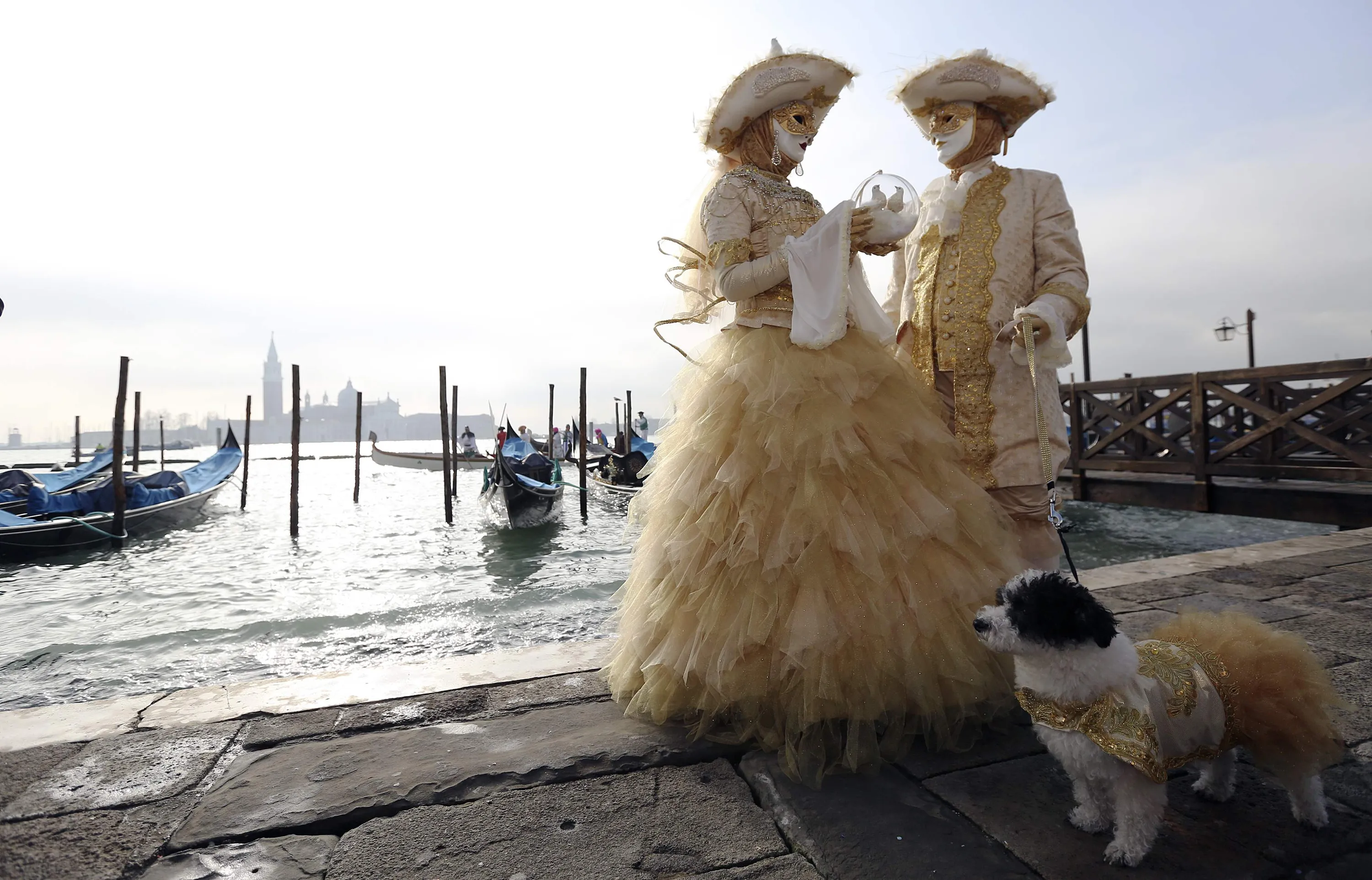 Masked revellers pose in front of St. Mark square during carnival in Venice, February 8, 2015. (Photo by Stefano Rellandini/Reuters)