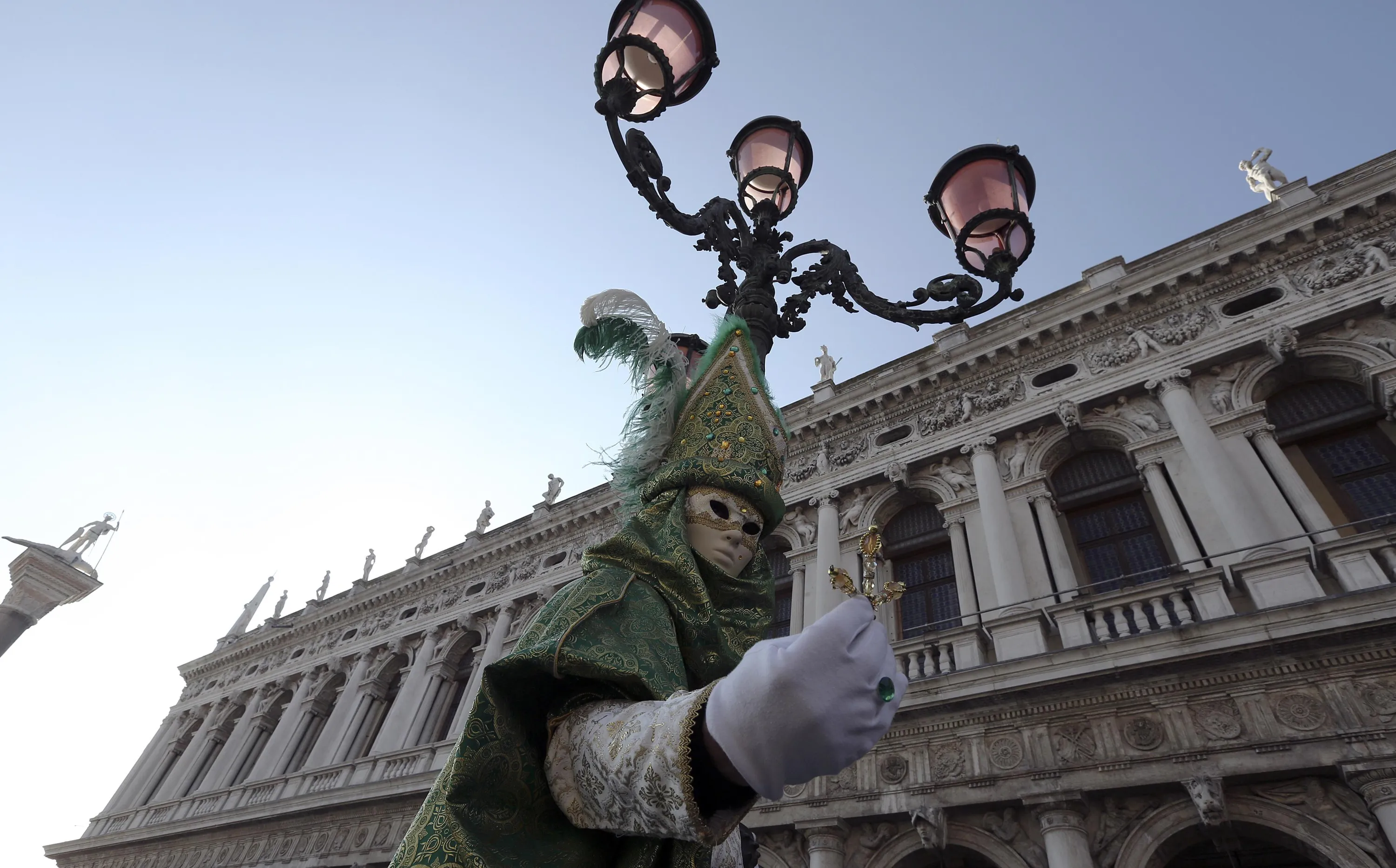 A masked reveller poses at Saint Mark's square during Carnival in Venice, February 8, 2015. (Photo by Stefano Rellandini/Reuters)