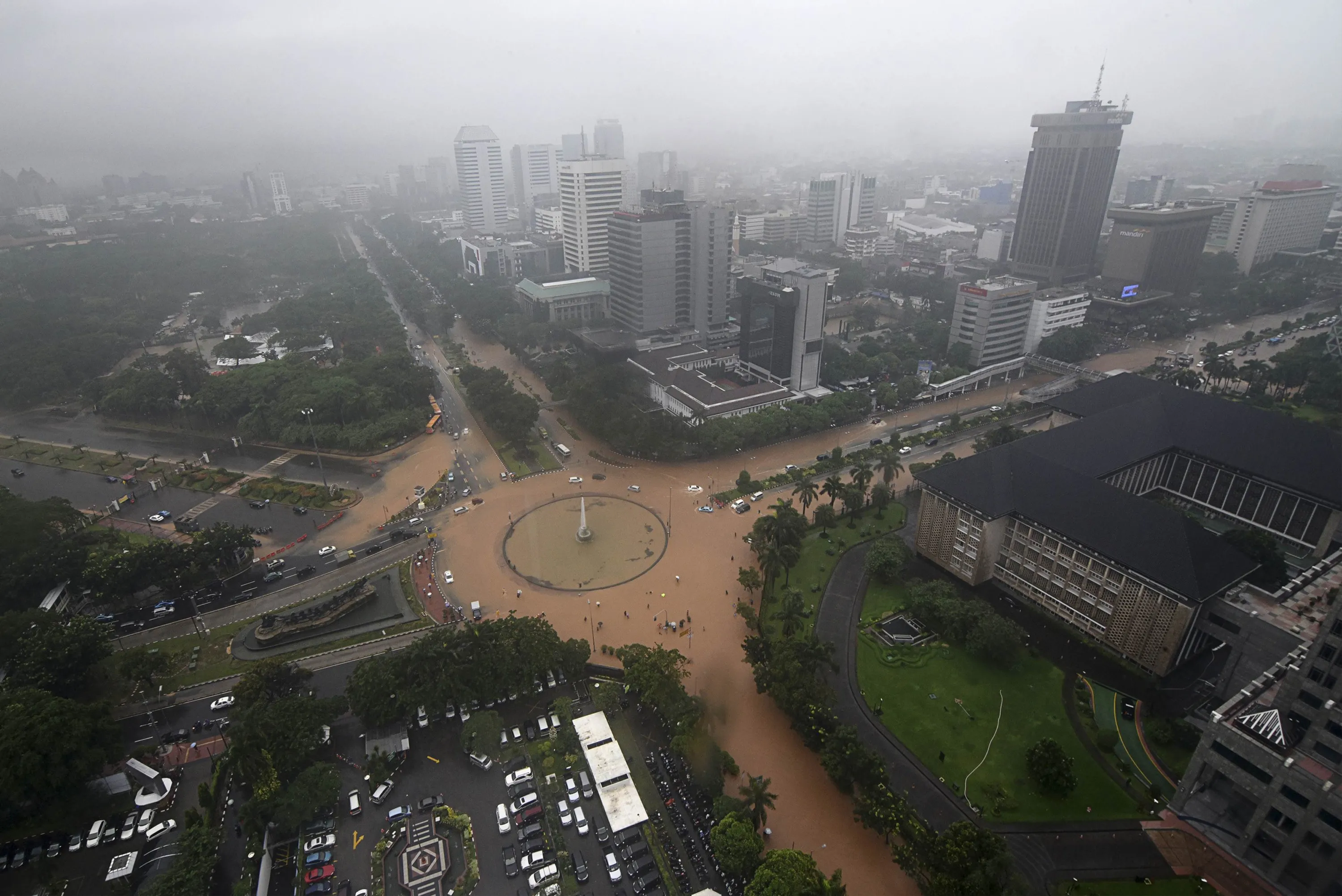 A view of a flooded roundabout is seen after heavy overnight rains brought flooding to parts of the city, paralysing traffic, in Jakarta February 9, 2015 in this photo taken by Antara Foto. (Photo by Zabur Karuru/Reuters/Antara Foto)