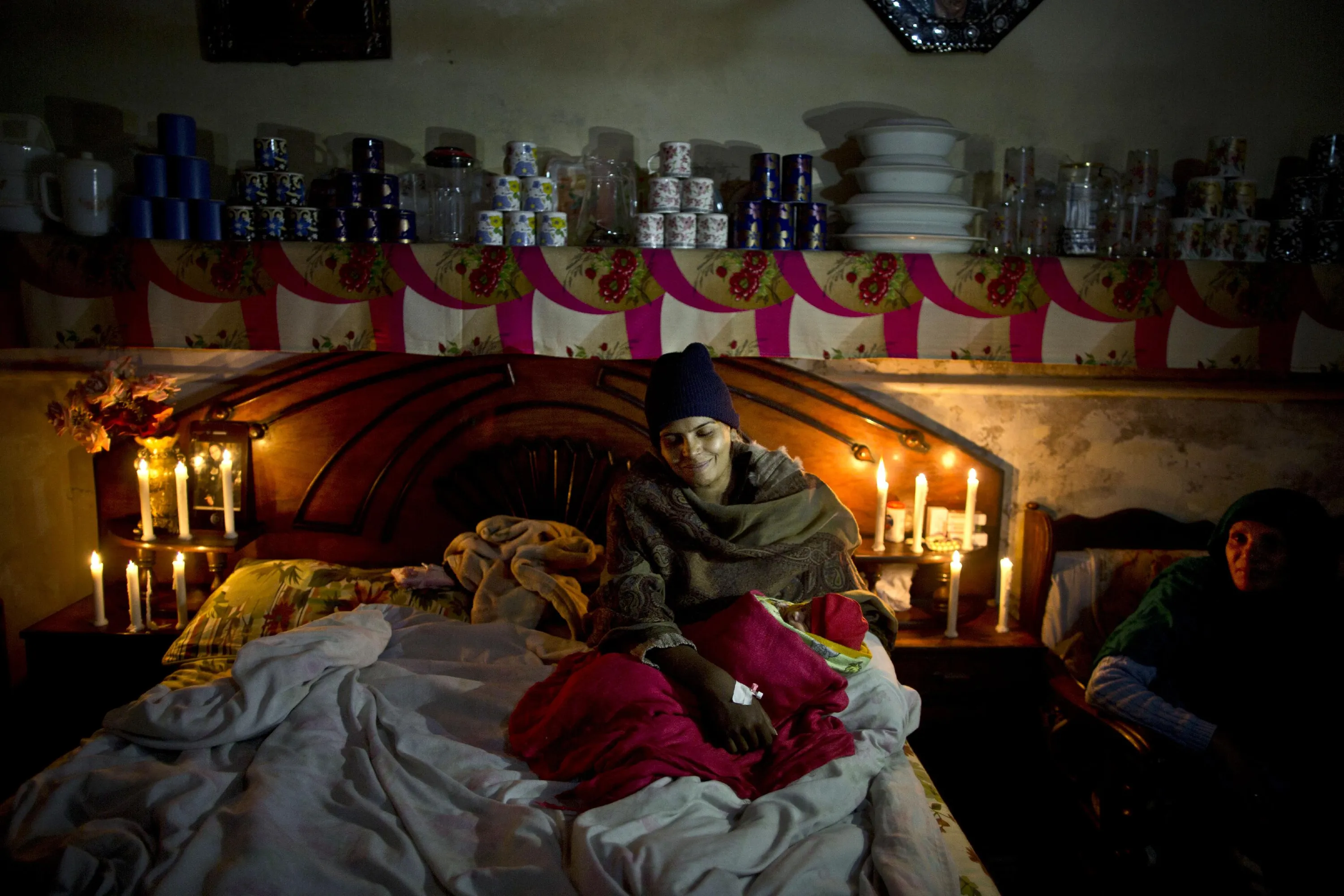 In this Sunday, February 1, 2015 photo, Pakistani Christian Shanaz Rafiq, 28, rests on her bed holding her 5 day-old son who was named Ashber after his baptism ceremony, upon her arrival from a hospital to her home in Rawalpindi, Pakistan. (Photo by Muhammed Muheisen/AP Photo)