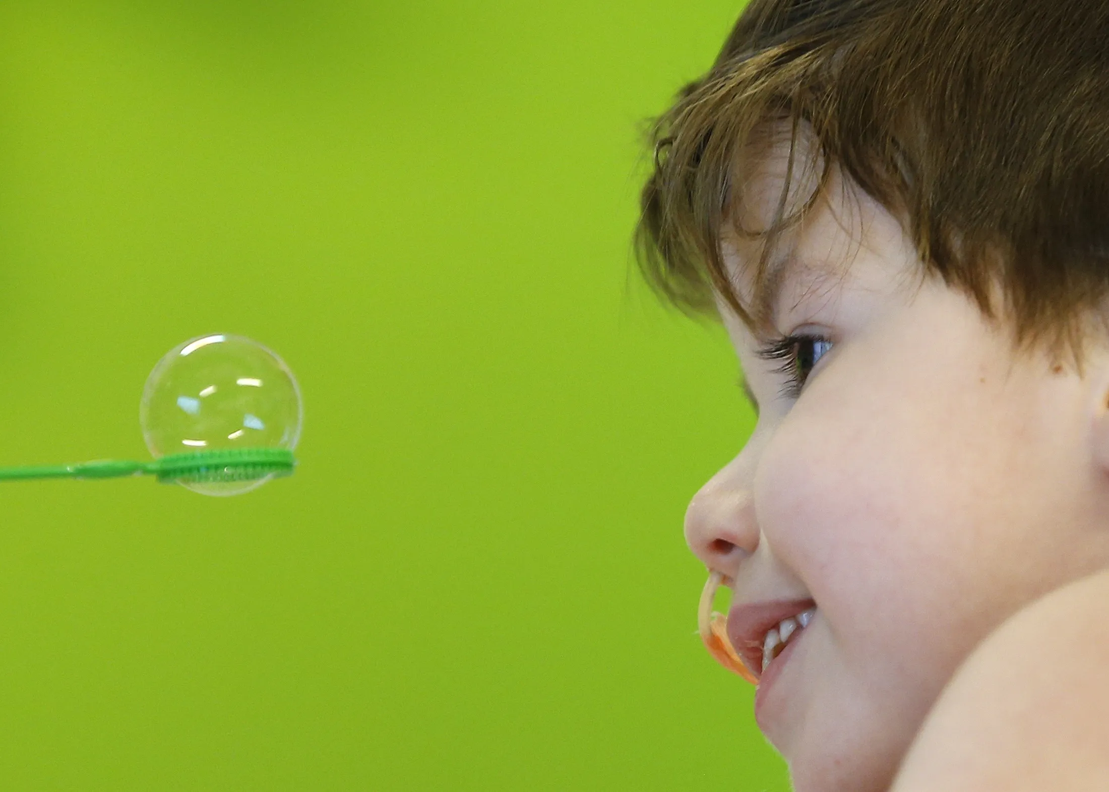 Mohamed, 5, looks at a soap bubble at the pediatric department of the Hopital Erasme at the Universite Libre de Bruxelles (ULB), in Brussels, January 22, 2015. (Photo by Yves Herman/Reuters)
