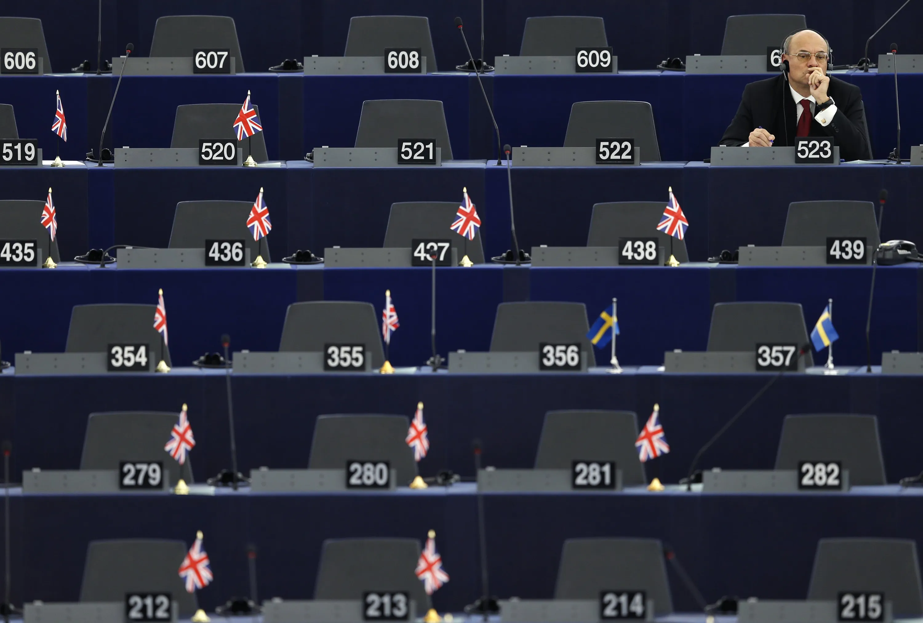 France's member of the European Parliament Jean-Luc Schaffhauser attends a debate on the situation in Ukraine at the European Parliament in Strasbourg, February 10, 2015. (Photo by Vincent Kessler/Reuters)