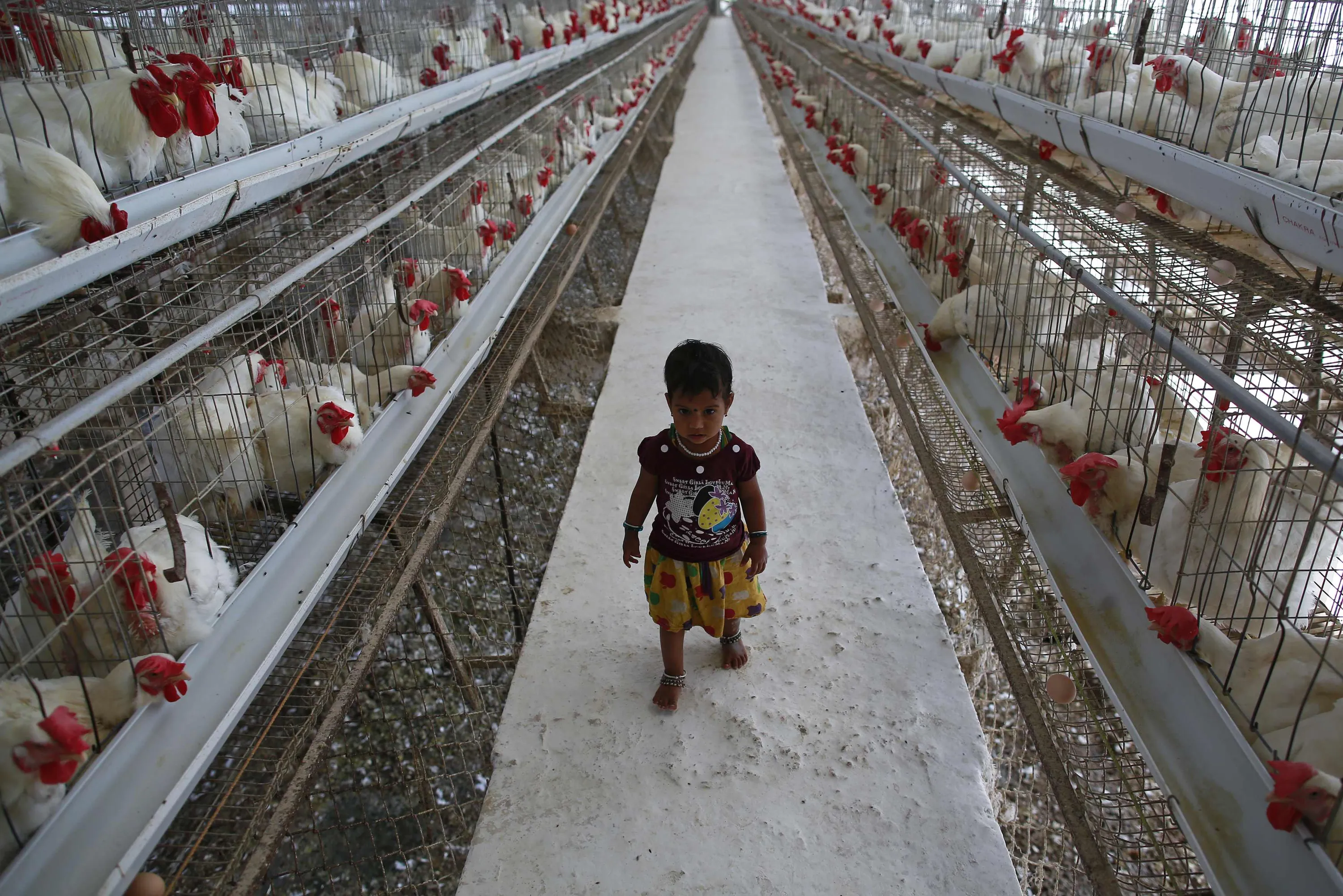 A girl walks on a pathway between cages of chickens at an hatchery in Mangaon, south of Mumbai February 2, 2015. Indian corn producers, after scoring virtually no major export deal for months, are counting on local chicken farms to absorb millions of tonnes of the grain as poultry output heads for yet another record year. India's poultry output has been scaling yearly records as higher incomes boost demand for meat in the world's second-most populous country after China. (Photo by Danish Siddiqui/Reuters)