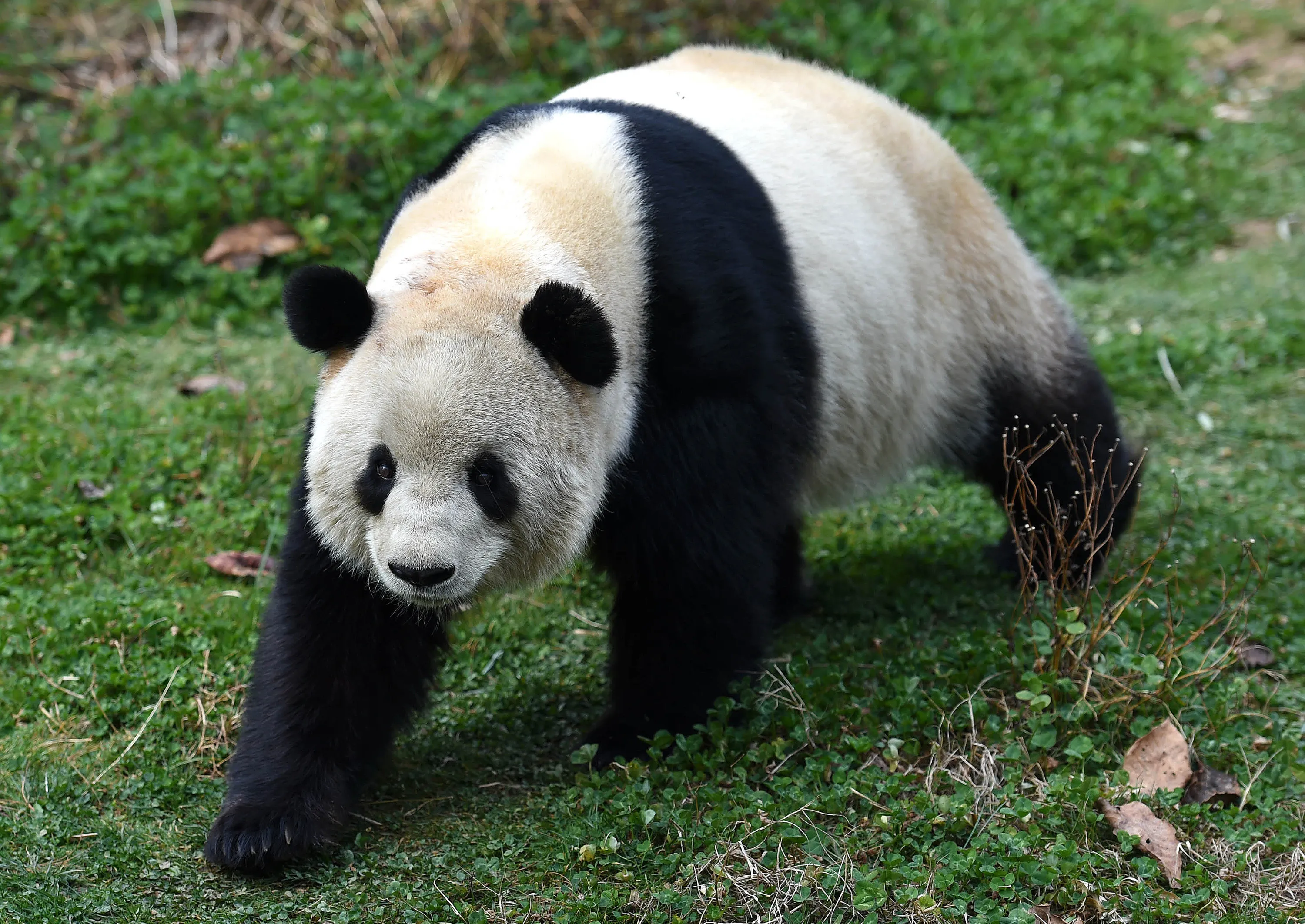 Giant panda Sijia takes a stroll at the Yunnan Safari Park in Kunming, capital of southwest China's Yunnan Province, February 11, 2015. The city's temperature arrived at 20 degrees Celsius in recent days. (Photo by Lin Yiguang/Xinhua)