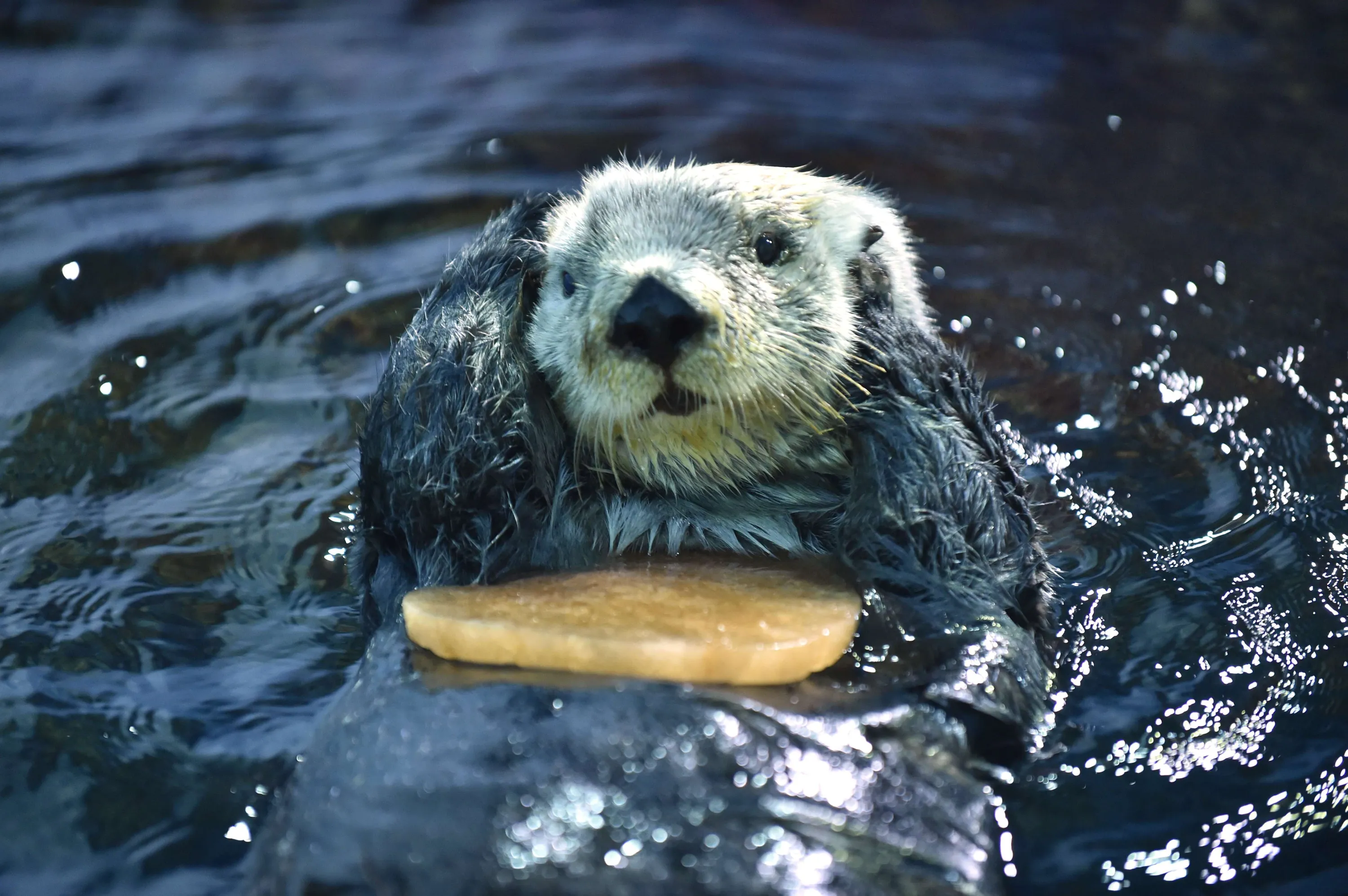 An Alaskan sea otter swims holding a heart-shaped block of ice, presented by his keeper in the aquarium of an amusement park in Yokohama on February 11, 2015. (Photo by Kazuhiro Nogi/AFP Photo)
