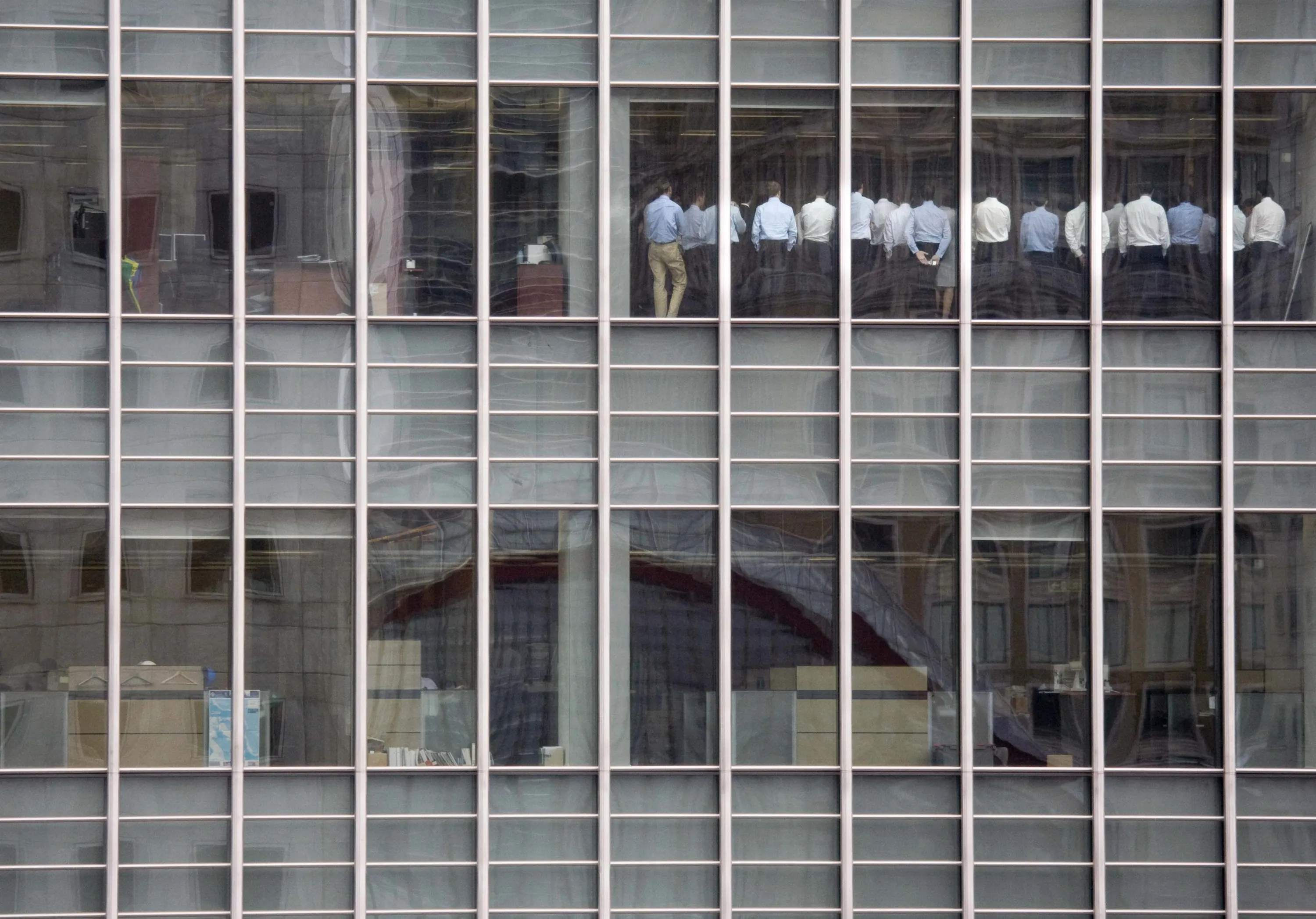 Staff members stand in a meeting room at Lehman Brothers offices in the financial district of Canary Wharf in London in this September 11, 2008 file photo. Kevin Coombs: This is a very simple story. This photo was shot from the fourth floor newsroom at our offices in Canary Wharf, the heart of London's financial district. I was working on the pictures desk when I noticed three or four journalists looking out of the window. This is a busy newsroom and people don't hang around staring out the window so I immediately grabbed my camera and ran across to see what was happening and spotted the Lehman employees. I knew Lehman was struggling and I knew that was the Lehman Brothers building. As I was shooting the picture I was really thinking about how best to stop the reflections as I was shooting through thick glass. The people lining up is what struck me first but I did not realise the significance of it until I walked back over to the desk and checked our systems which showed the Lehman share price dipping. It became obvious that this was a crisis meeting and at that point I knew this was an important picture. The picture has been used over and over to illustrate the beginning of the global financial crash. For me to shoot one of my most used pictures from our newsroom window is quite bizarre, but it proves you only see good pictures when you look around and have your camera ready at all times. (Photo by Kevin Coombs/Reuters)