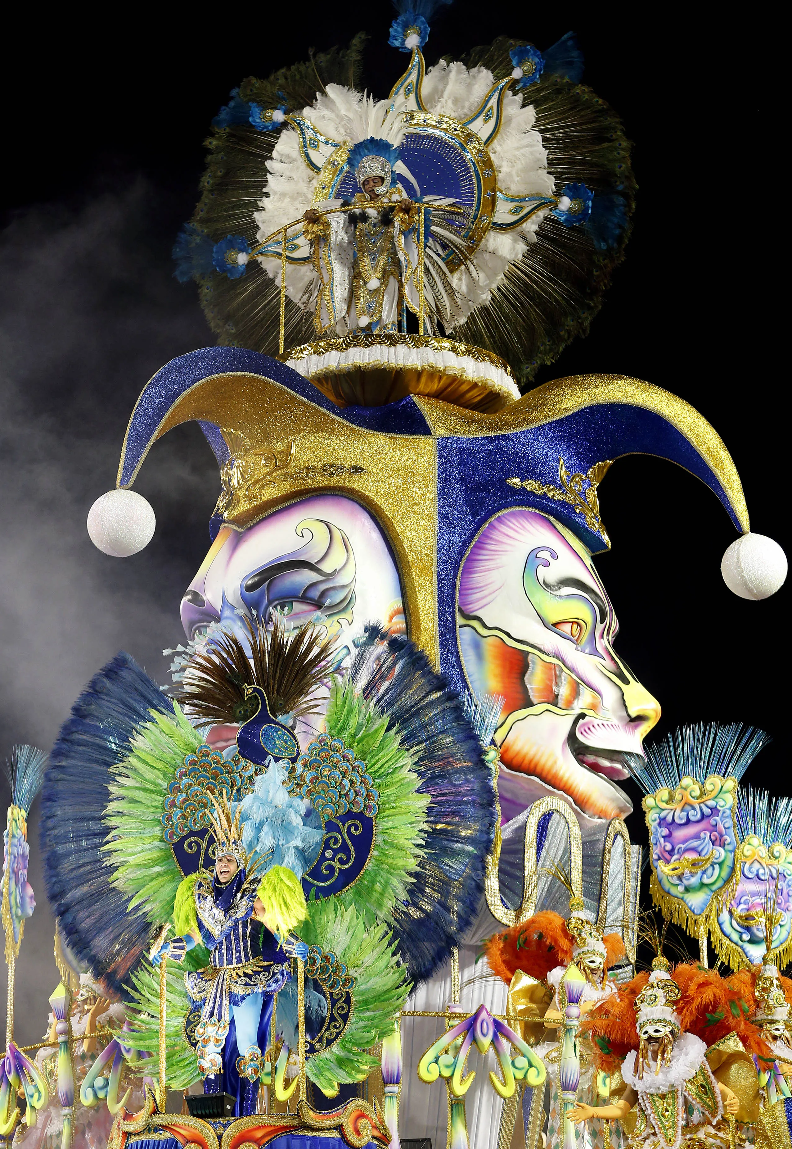 Dancers from the Academicos do Tucuruvi samba school perform on a float during the Carnival parade at the Sambodromo in Sao Paulo, Brazil, Friday, February 13, 2015. (Photo by Andre Penner/AP Photo)
