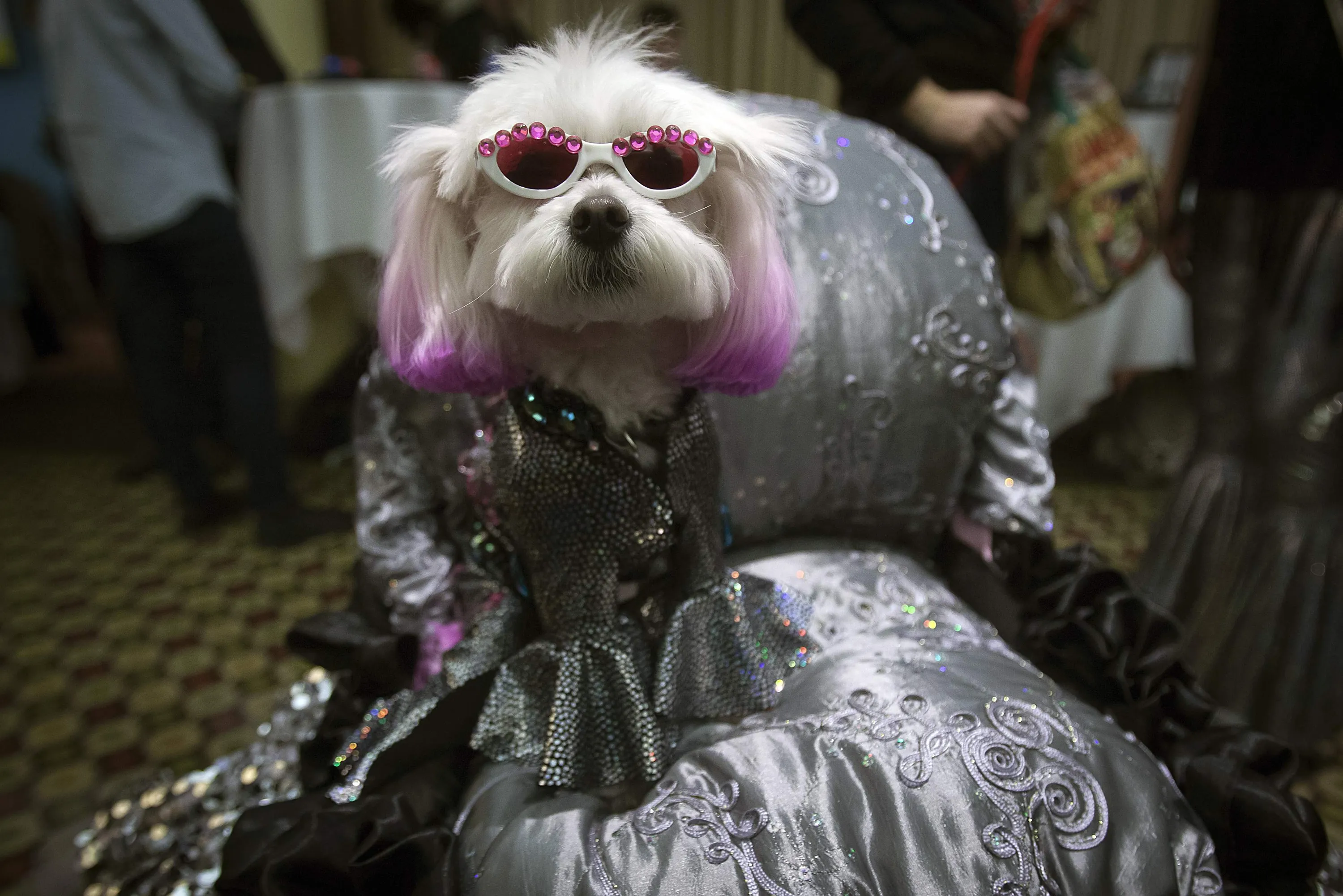 A dog sits in a stroller after a New York Pet Fashion Show event during Fashion Week in the Manhattan borough of New York February 12, 2015. (Photo by Carlo Allegri/Reuters)