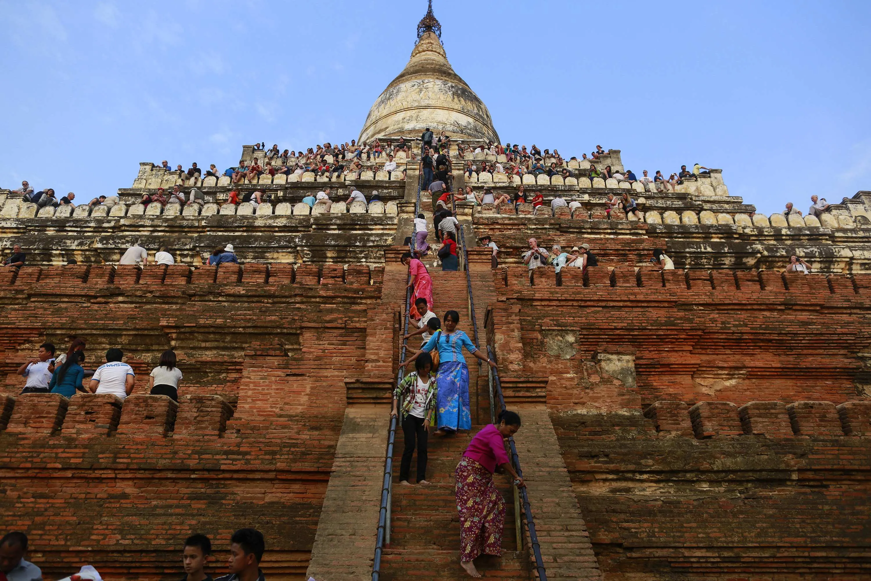 People wait to see the sunset from the top of Shwesandaw Pagoda in the ancient city of Bagan February 13, 2015. (Photo by Soe Zeya Tun/Reuters)