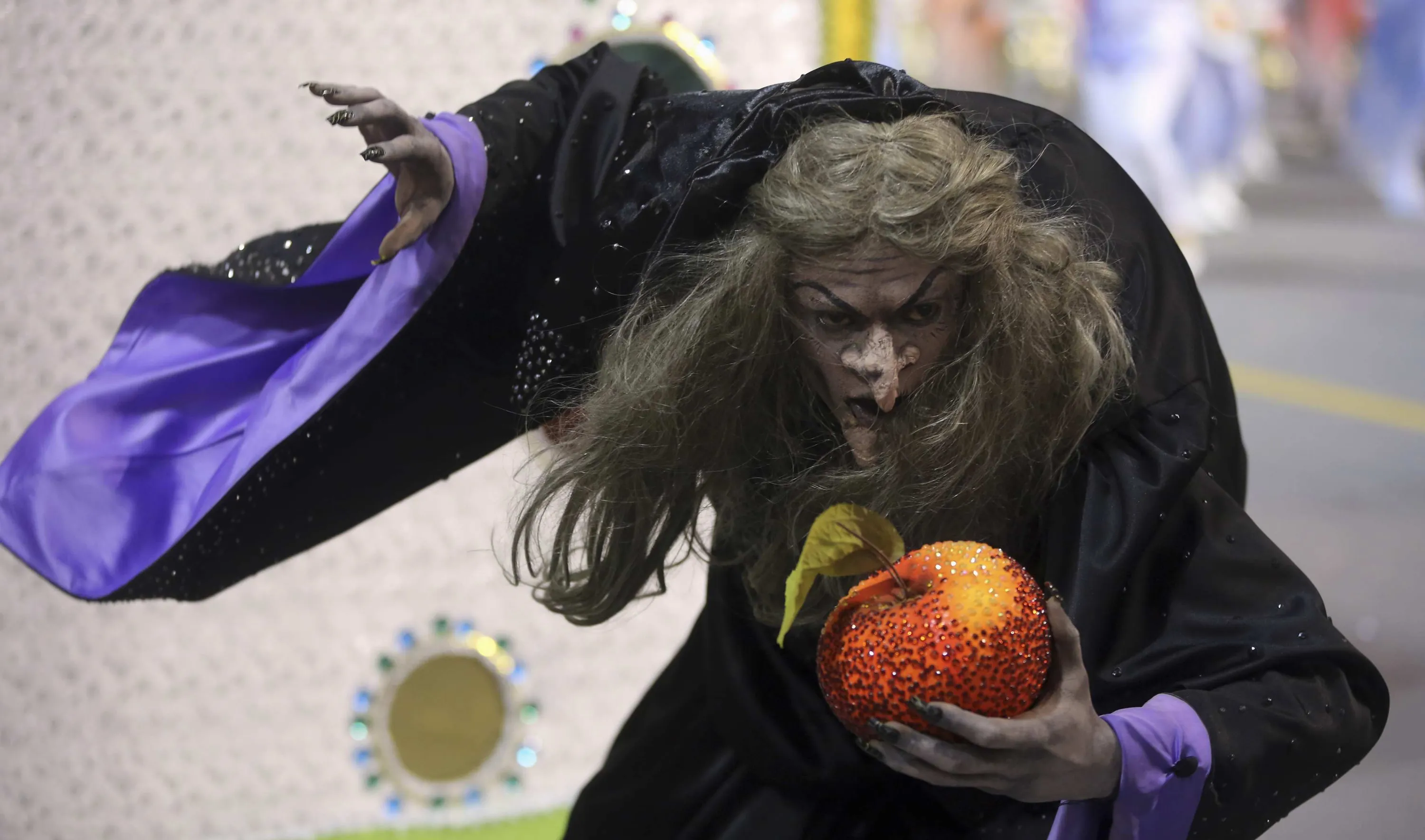 A reveller from the Im perioo da Casa Verde Samba School takes part in a carnival at Anhembi Sambadrome in Sao Paulo February 15, 2015. (Photo by Paulo Whitaker/Reuters)