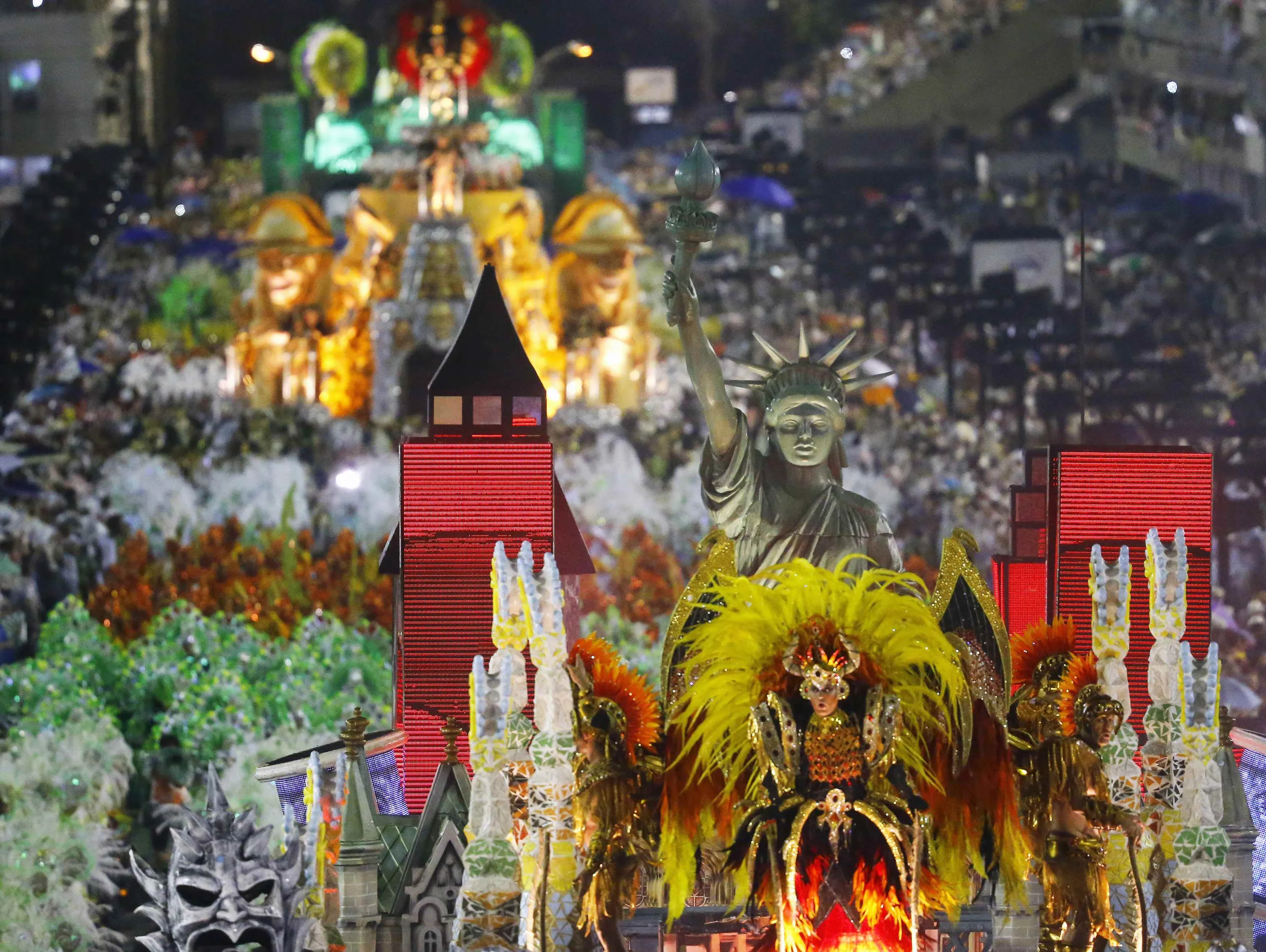 Revellers from the Mocidade samba school participate in the annual carnival parade in Rio de Janeiro's Sambadrome, February 16, 2015. (Photo by Ricardo Moraes/Reuters)