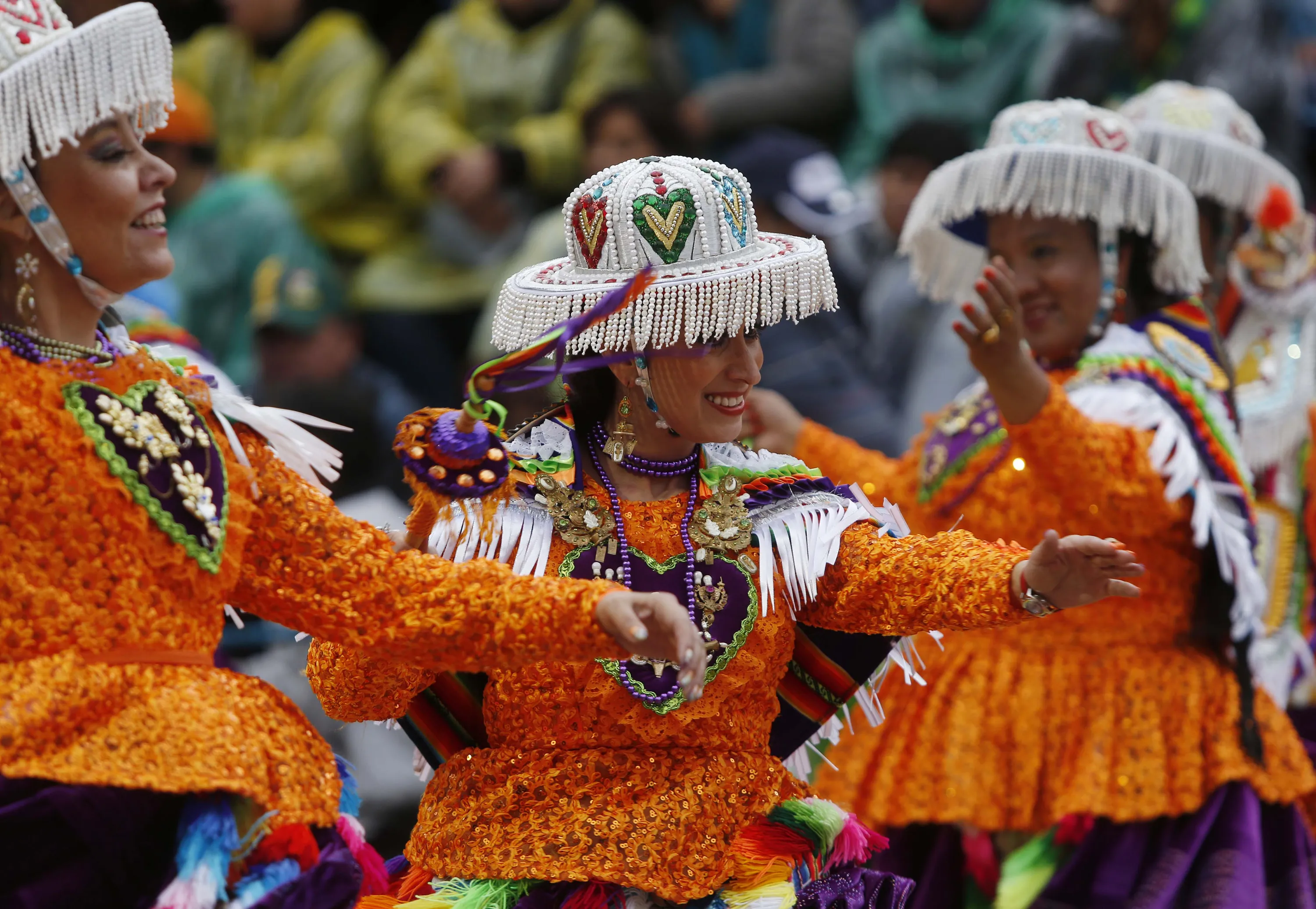 Kullagua dancers perform during the carnival celebrations in Oruro, Bolivia, Saturday February 14, 2015. (Photo by Juan Karita/AP Photo)