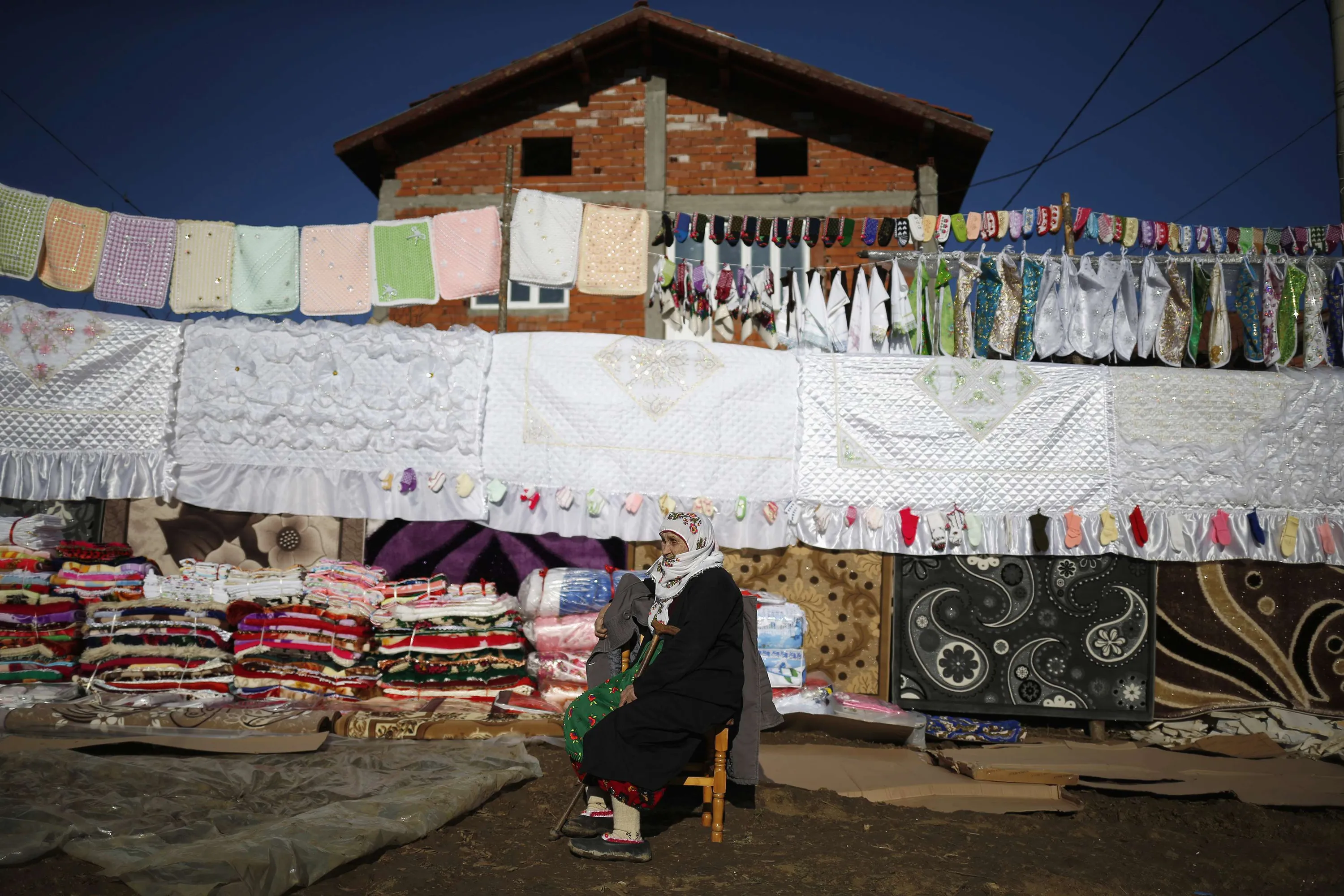 A Bulgarian Muslim woman sits in front of a dowry during the wedding ceremony of Bulgarian Muslims Fikrie Bindzheva and Azim Liumankov in the village of Ribnovo, in the Rhodope Mountains, February 14, 2015. (Photo by Stoyan Nenov/Reuters)