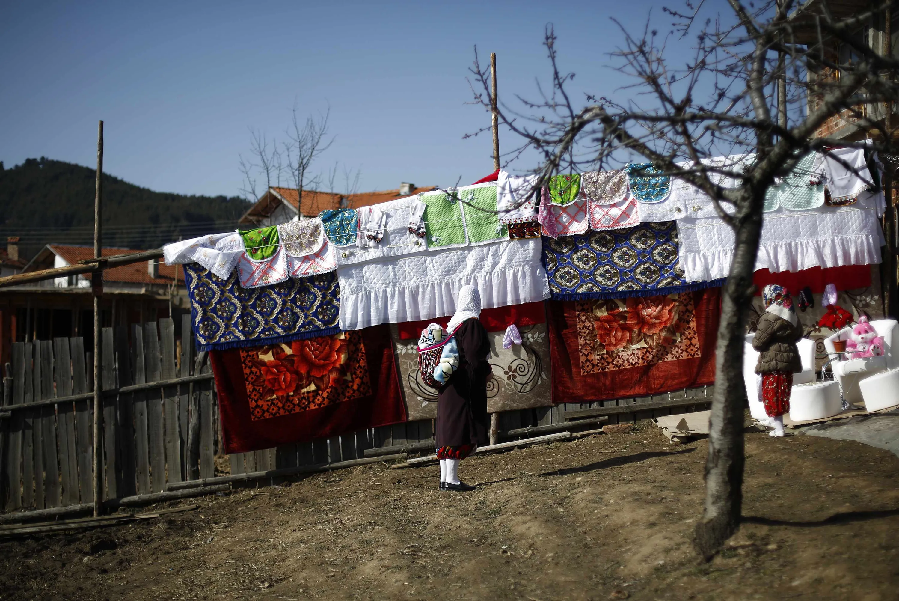 A Bulgarian Muslim woman looks at the dowry during the wedding ceremony of Bulgarian Muslims Fikrie Bindzheva and Azim Liumankov in the village of Ribnovo, in the Rhodope Mountains, February 15, 2015. (Photo by Stoyan Nenov/Reuters)