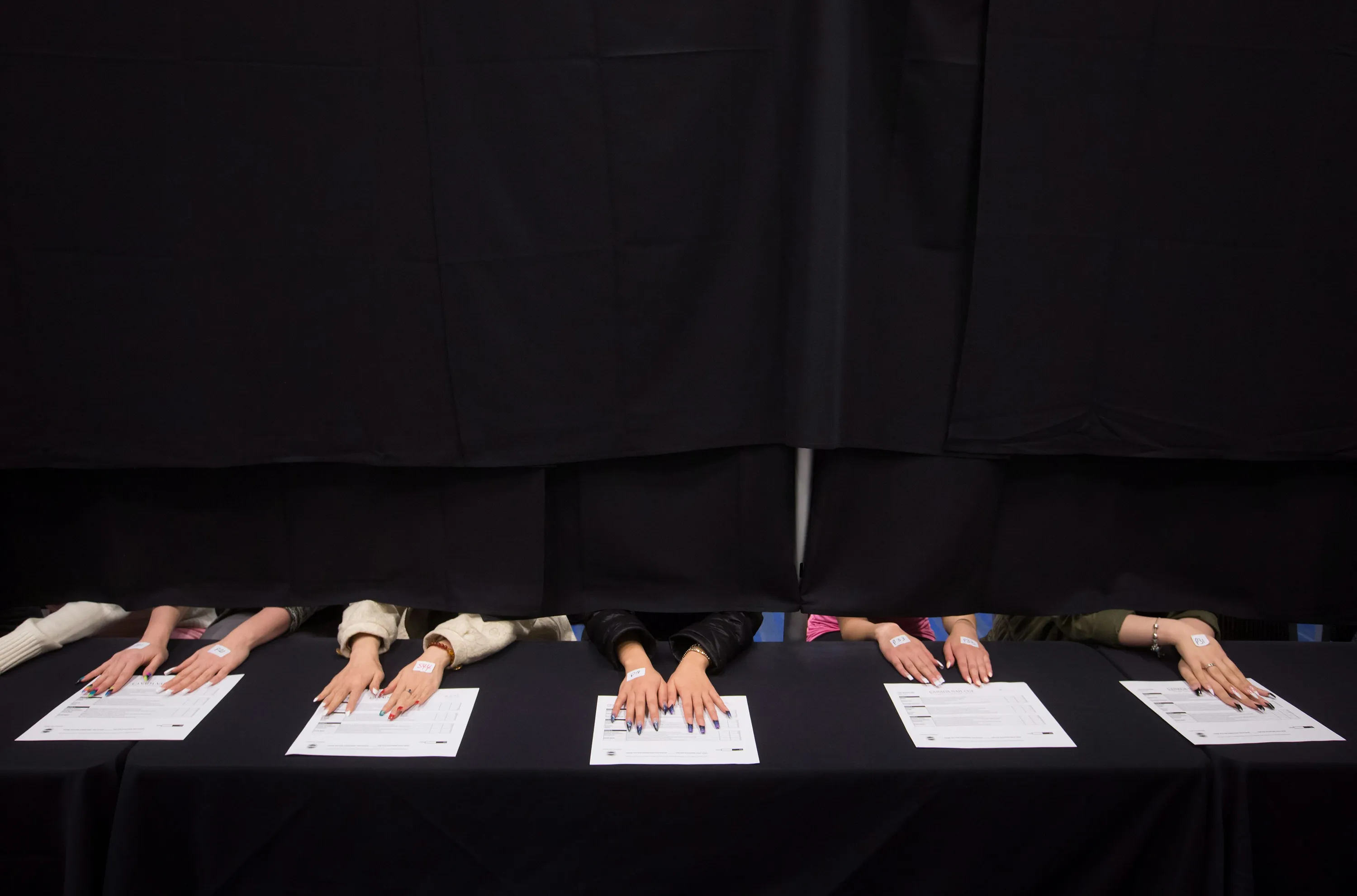 Models wait to have the nail art of competitors judged at the Canada Nail Cup in Vancouver, Monday, February 16, 2015. (Photo by Darryl Dyck/AP Photo/The Canadian Press)