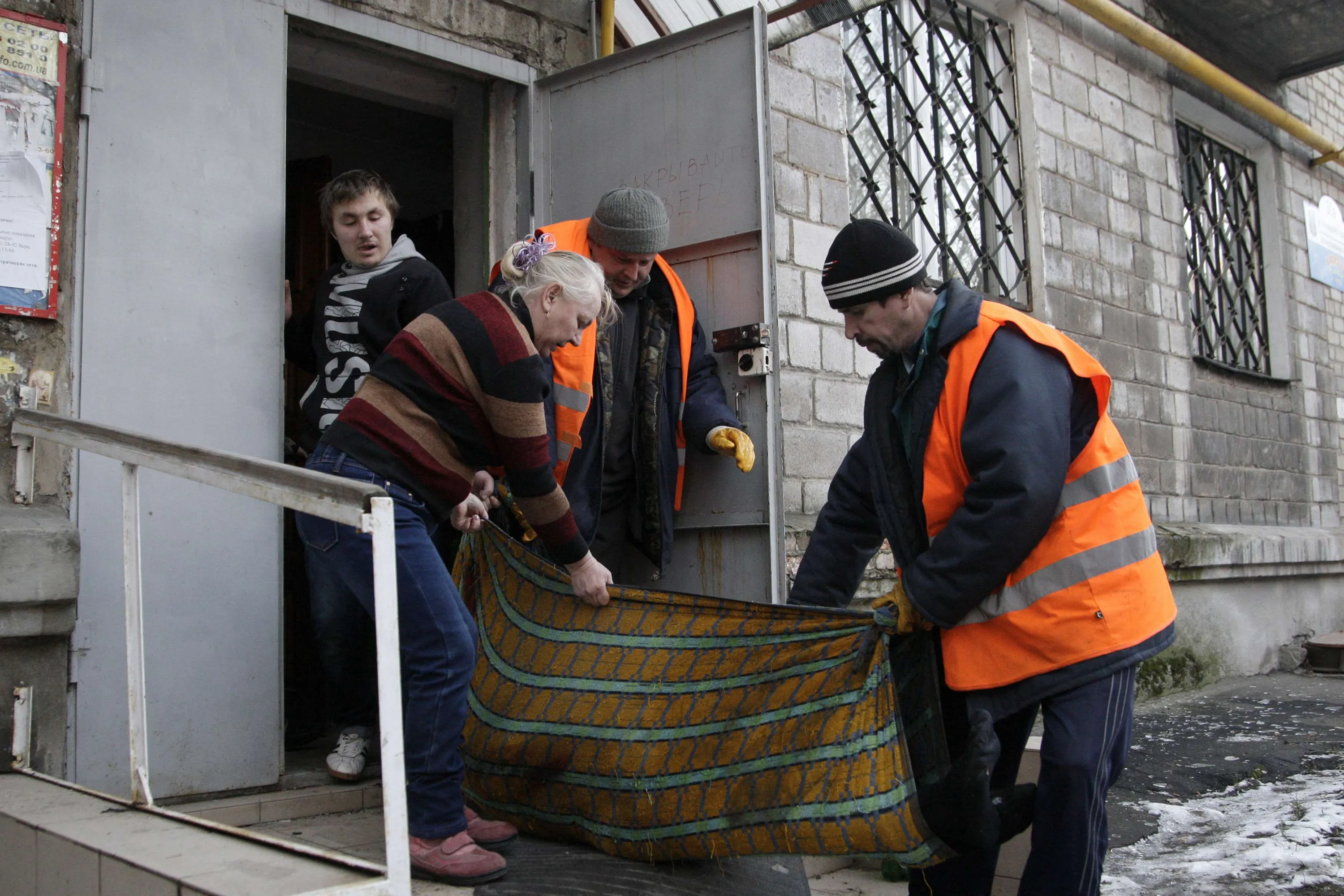 People carry the body of a victim killed by a recent shelling in central Donetsk, eastern Ukraine February 14, 2015. (Photo by Alexander Ermochenko/Reuters)