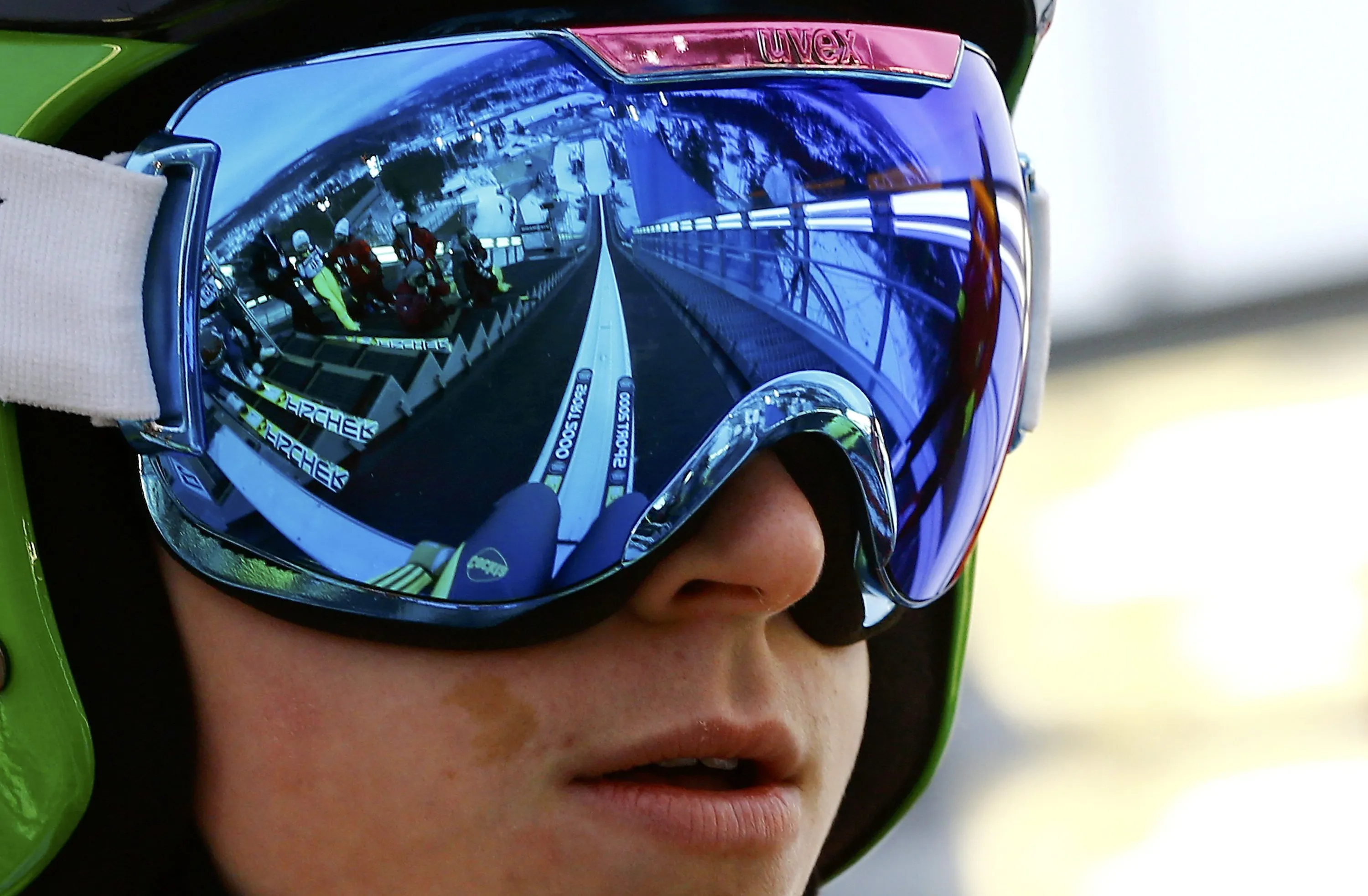 Spela Rogelj from Slovenia prepares for a training session of the women's Individual normal hill HS100 ski jumping at the Nordic World Ski Championships in Falun February 18, 2015. (Photo by Kai Pfaffenbach/Reuters)
