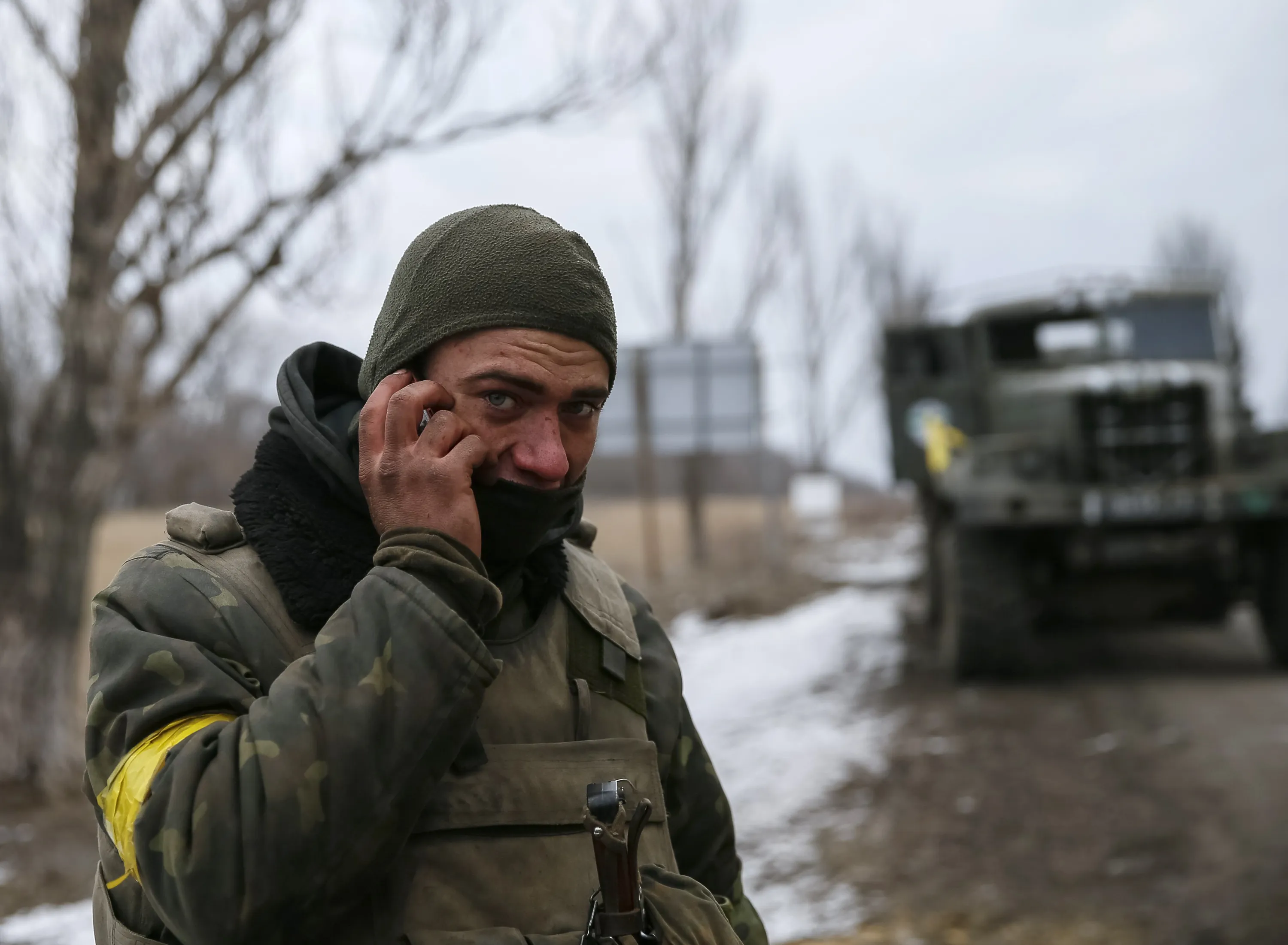 A Ukrainian serviceman who fought in Debaltseve is seen near Artemivsk February 19, 2015. (Photo by Gleb Garanich/Reuters)