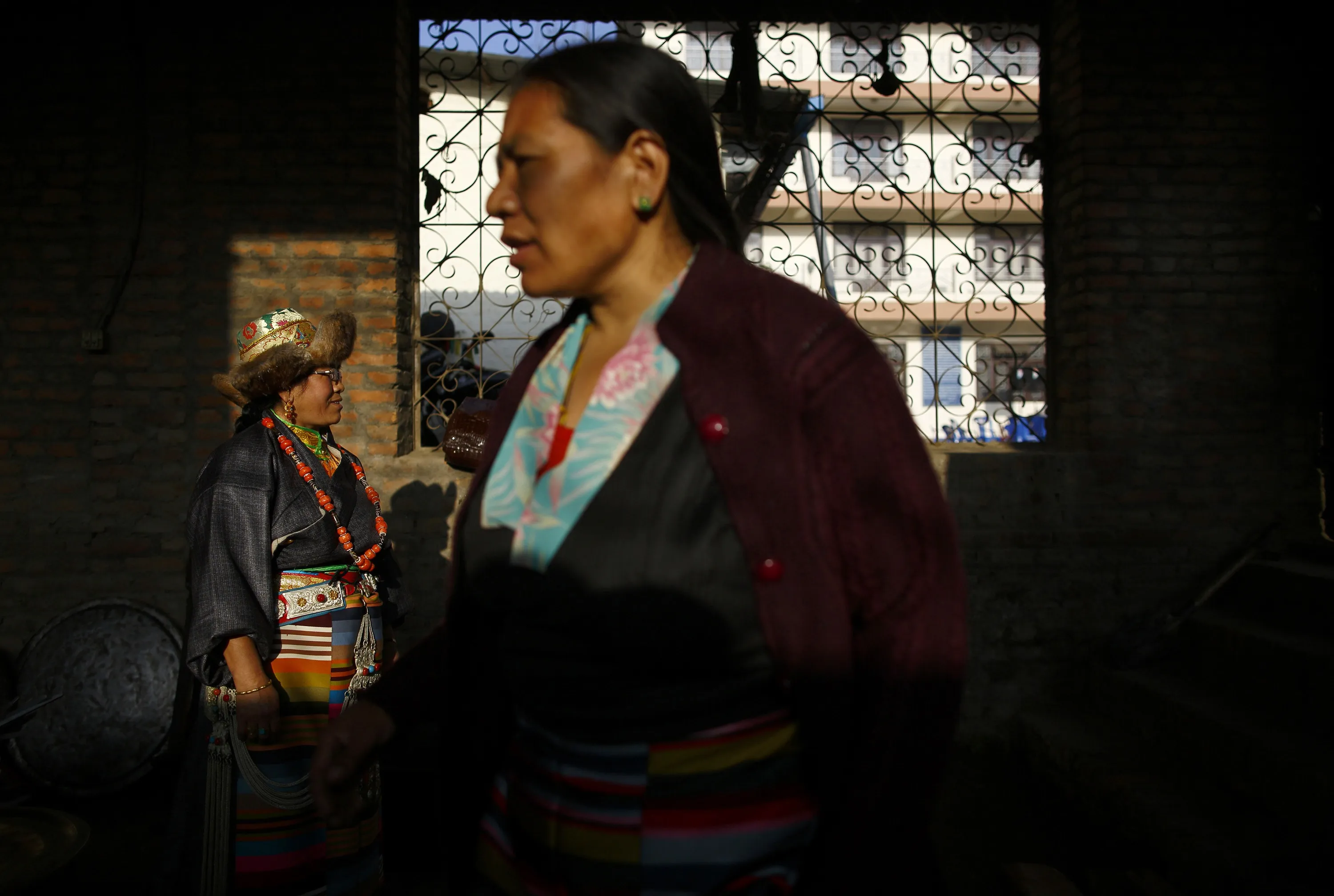 Tibetan women dressed in traditional attire works inside the kitchen to prepare food for the guests during the function organised to mark Losar or the Tibetan New Year at Tibetan Refugee Camp in Lalitpur February 19, 2015. (Photo by Navesh Chitrakar/Reuters)