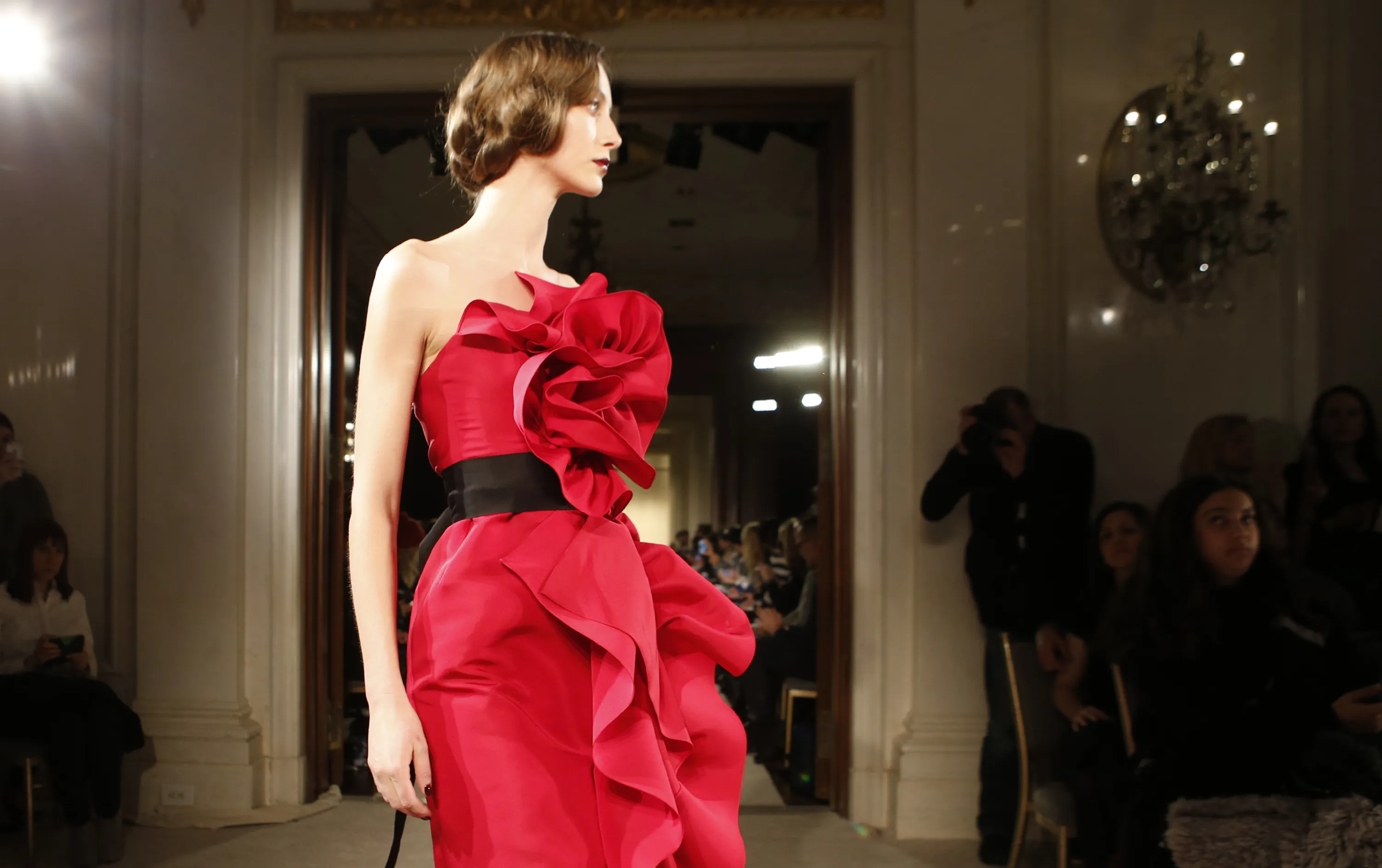 A model walks the runway at the Marchesa Fall 2015 fashion show in New York, Wednesday, February 18, 2015. (Photo by Kathy Willens/AP Photo)