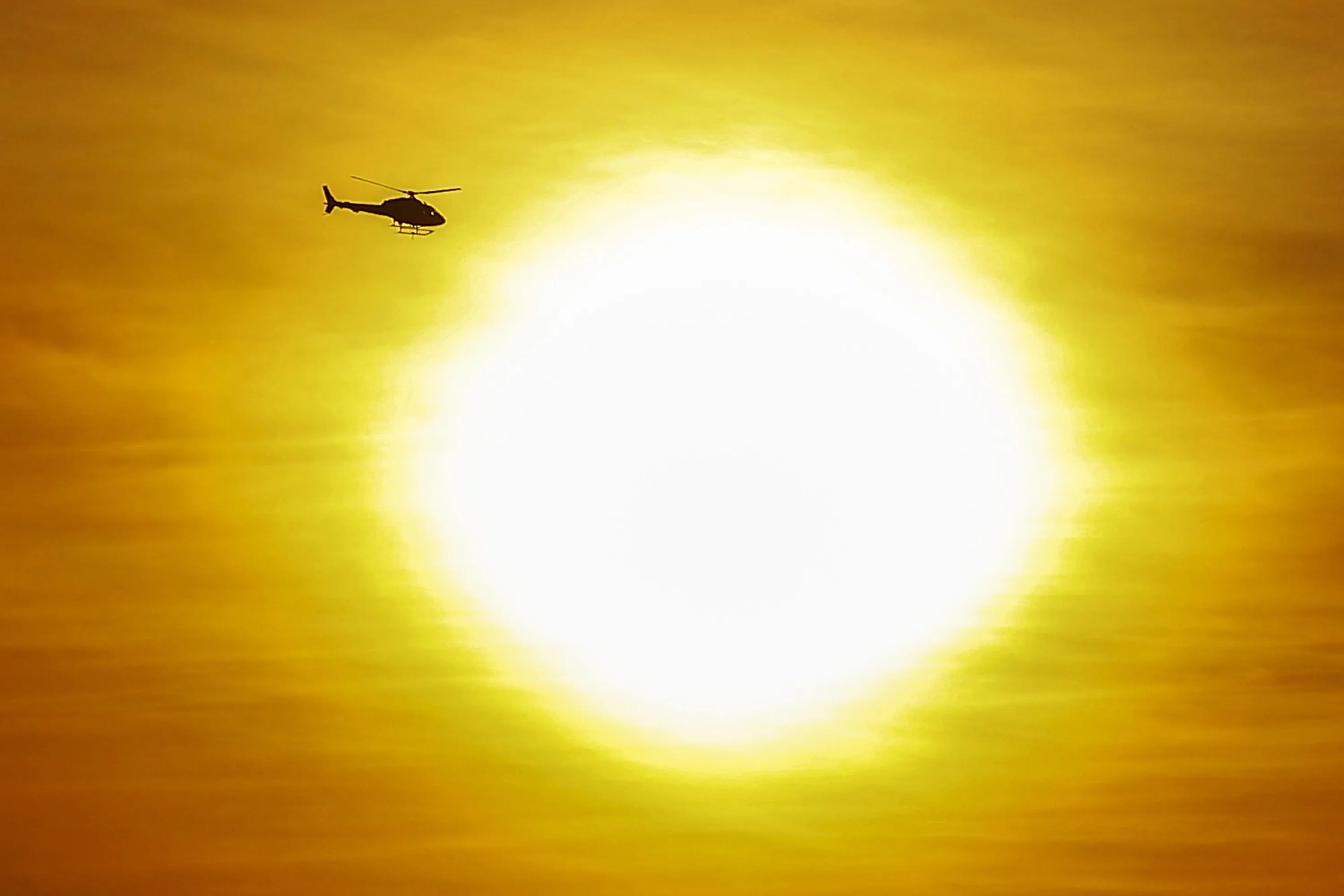 A Police helicopter patrols around the Palace of Justice during Malaysian opposition leader Anwar Ibrahim's sodomy final appeal decision in Putrajaya, Malaysia, 10 February 2015. Supporters of Malaysian opposition leader Anwar Ibrahim gathered outside the country's highest court on 10 February 2015, ahead of the verdict of his final appeal against a sodomy conviction. Over 1,000 supporters chanted “Reformasi” (reforms) and called on the Federal Court to acquit Anwar. “We know this is a political prosecution”, said Tian Chua, a vice president of Anwar's Parti Kaedilan Rakayat (People's Justice party). Police security was also boosted around the Federal Court in the national government centre of Putrajaya outside Kuala Lumpur. Anwar, 67, was sentenced to five years' imprisonment in March by the appeals court for sodomizing former male aide Saiful Bukhari Azlan in 2008. Sodomy is a crime in the predominantly Muslim South-East Asian state. (Photo by Fazry Ismail/EPA)