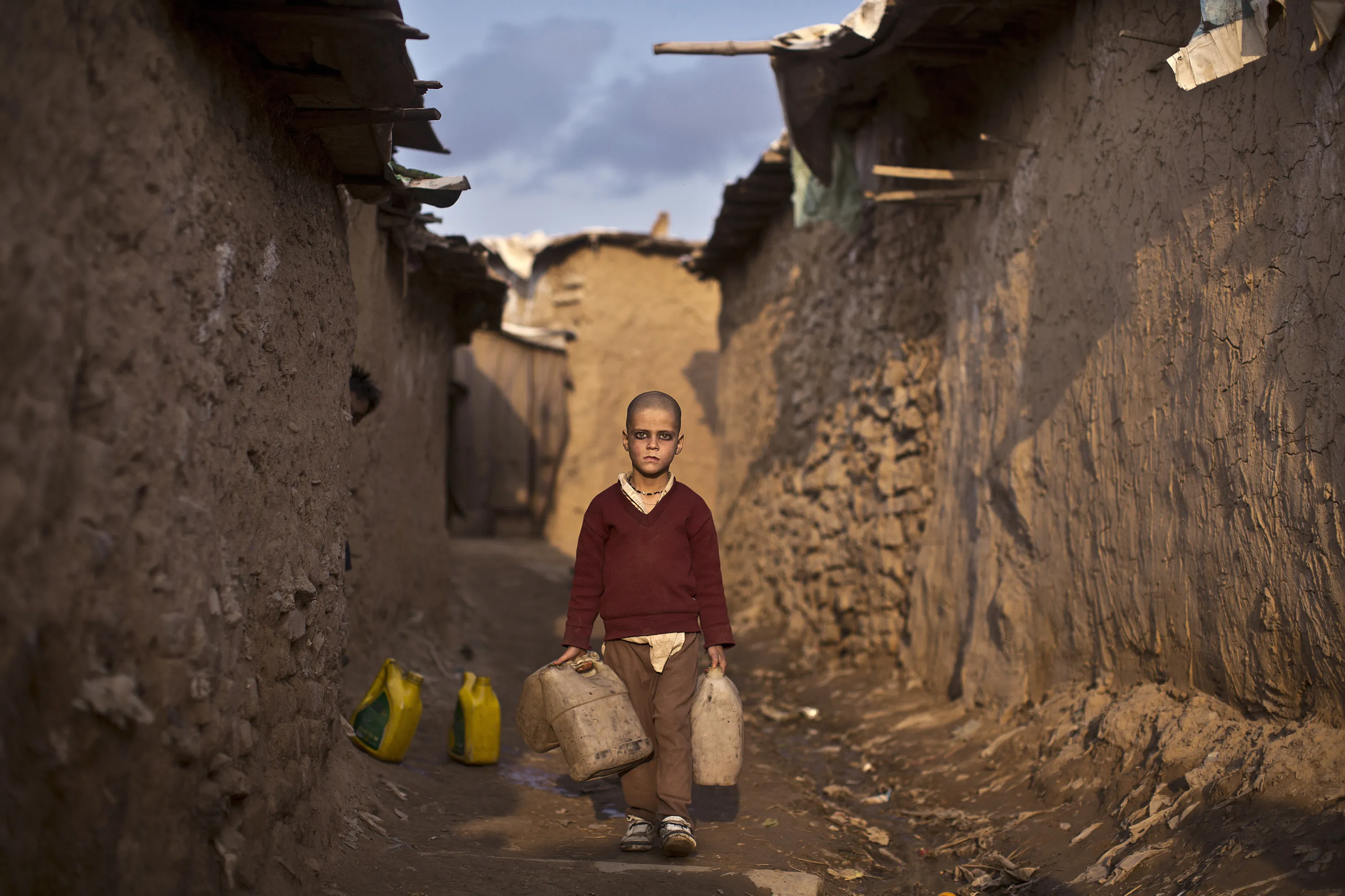 An Afghan refugee boy walks toward a hand pump to fetch water, in a slum on the outskirts of Islamabad, Pakistan, Tuesday, February 3, 2015. (Photo by Muhammed Muheisen/AP Photo)