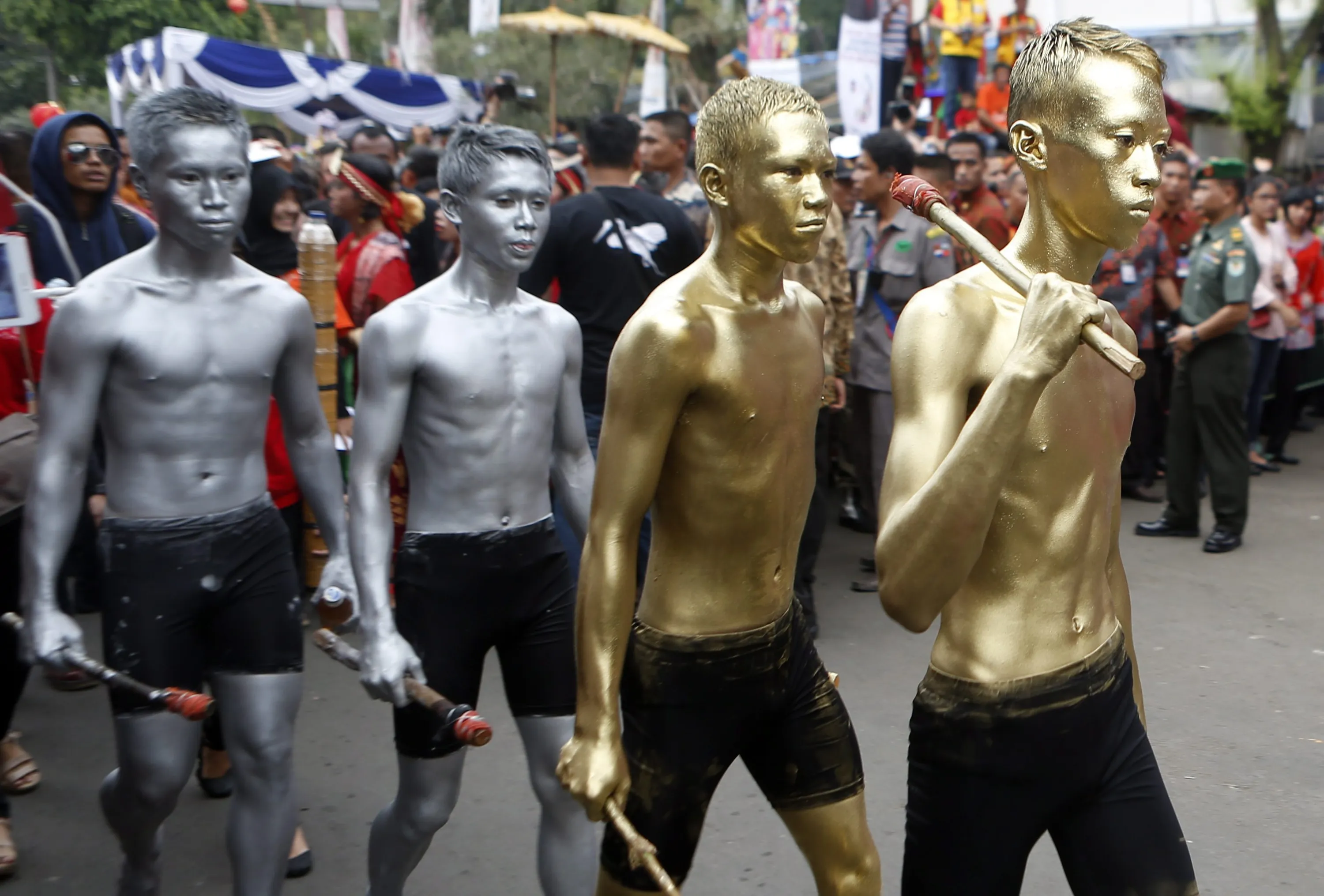 An Indonesian artist performs during the people's party and Chinese Cap Go Meh festival on a street in Bogor, Indonesia, 05 March 2015. Chinese-Indonesians across the country celebrate Cap Go Meh on the 15th day in the first month of the Chinese lunar New Year. EPA/ADI WEDA