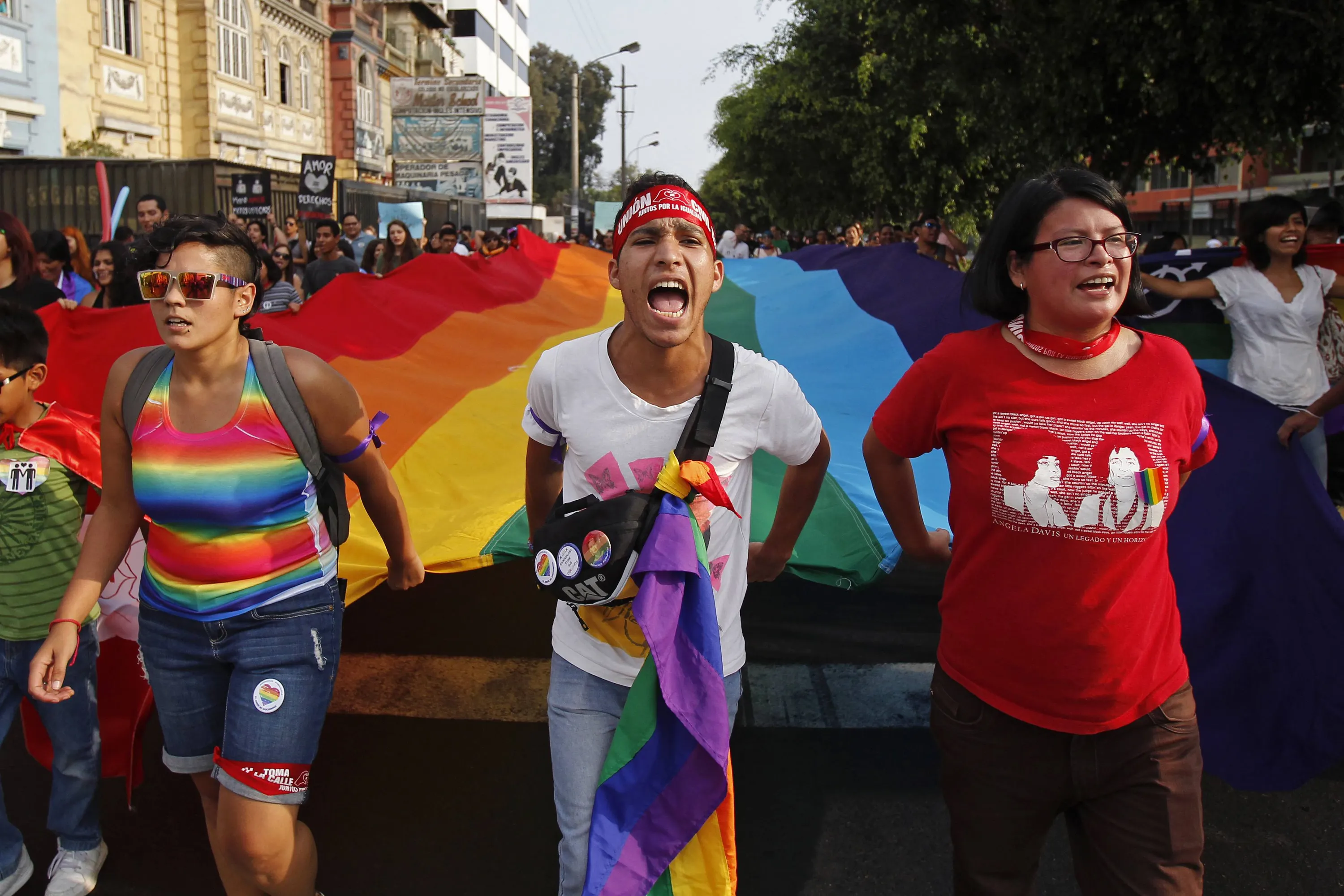 A member of gay and lesbian organizations puts on a mask during a march in support of the Civil Union project law in Lima, March 7, 2015. REUTERS/Enrique Castro-Mendivil (PERU - Tags: POLITICS SOCIETY) Members of gay and lesbian organizations hold a Gay Pride flag as they march in support of the Civil Union project law in Lima, March 7, 2015. REUTERS/Enrique Castro-Mendivil (PERU - Tags: POLITICS SOCIETY) A member of gay and lesbian organization holds a banner as she marches in support of the Civil Union project law in Lima, March 7, 2015. "Larry Stylinson" refers to a fan fiction relationship imagined between One Direction members. REUTERS/Enrique Castro-Mendivil (PERU - Tags: POLITICS SOCIETY) Members of gay and lesbian organizations hold a Gay Pride flag as they march in support of the Civil Union project law in Lima March 7, 2015. REUTERS/Enrique Castro-Mendivil (PERU - Tags: POLITICS SOCIETY) Members of gay and lesbian organizations hold a Gay Pride flag as they march in support of the Civil Union project law in Lima, March 7, 2015. REUTERS/Enrique Castro-Mendivil (PERU - Tags: POLITICS SOCIETY) Members of gay and lesbian organizations take pictures before a march in support of the Civil Union project law in Lima, March 7, 2015. The banner reads: "Love and let love". REUTERS/Enrique Castro-Mendivil (PERU - Tags: POLITICS SOCIETY)