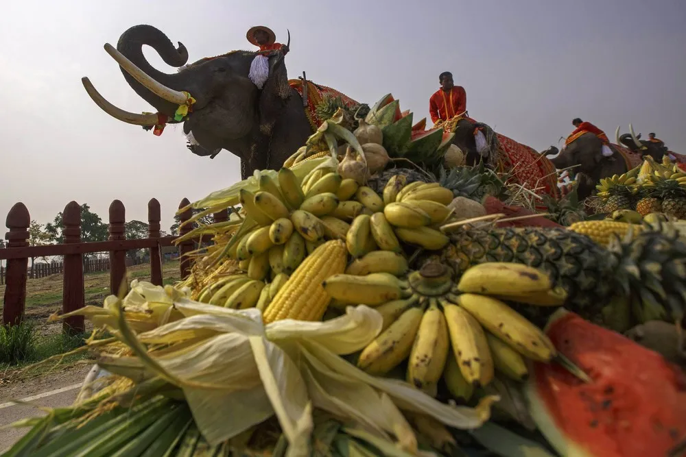 Elephants react before enjoy a “buffet” of fruit and vegetables during Thailand's National Elephant Day in the ancient Thai capital Ayutthaya March 13, 2015. (Photo by Athit Perawongmetha/Reuters)
