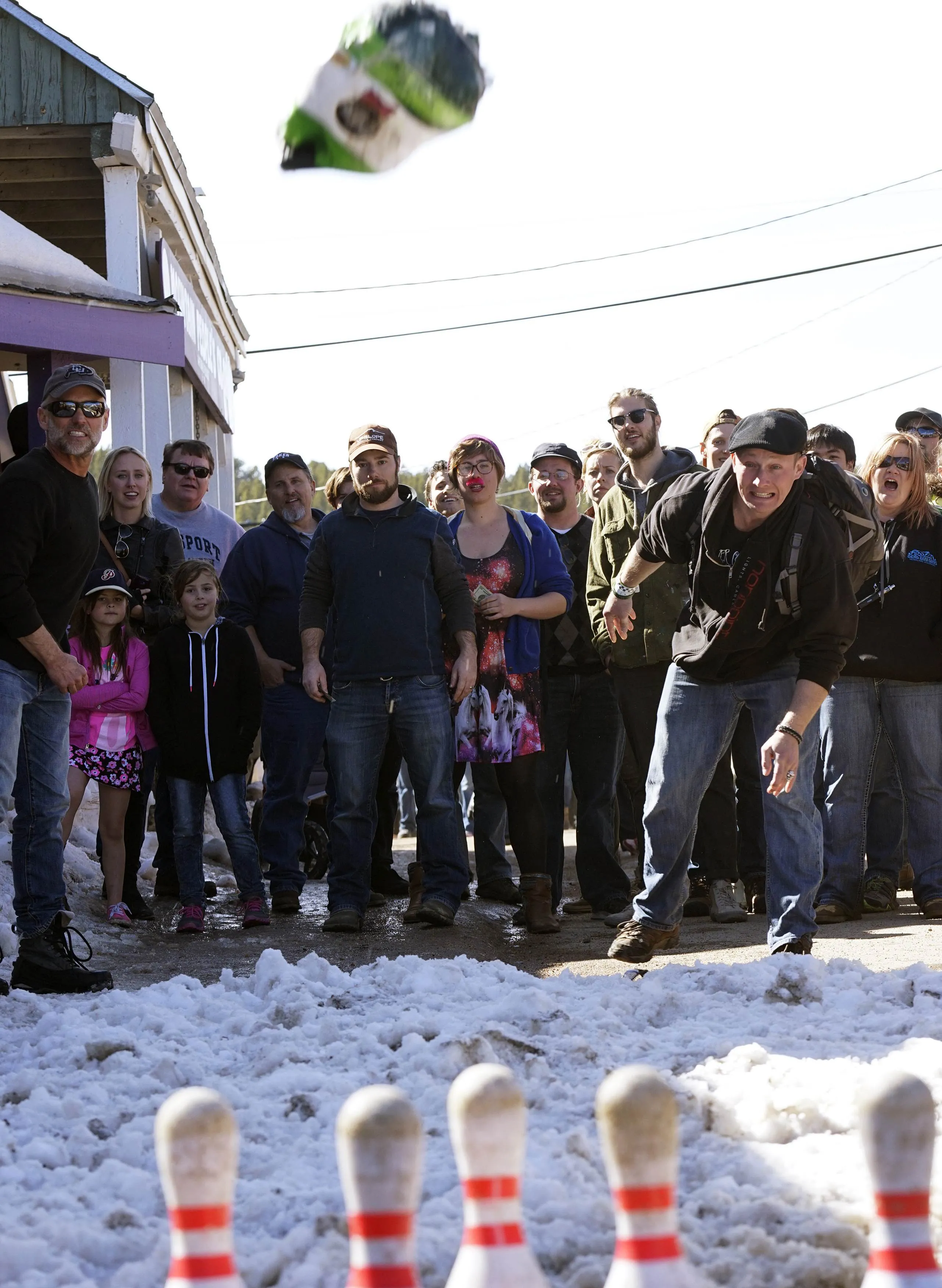A man competes in the Frozen Turkey Bowling event at Frozen Dead Guy Days in Nederland, Colorado March 14, 2015. (Photo by Rick Wilking/Reuters)