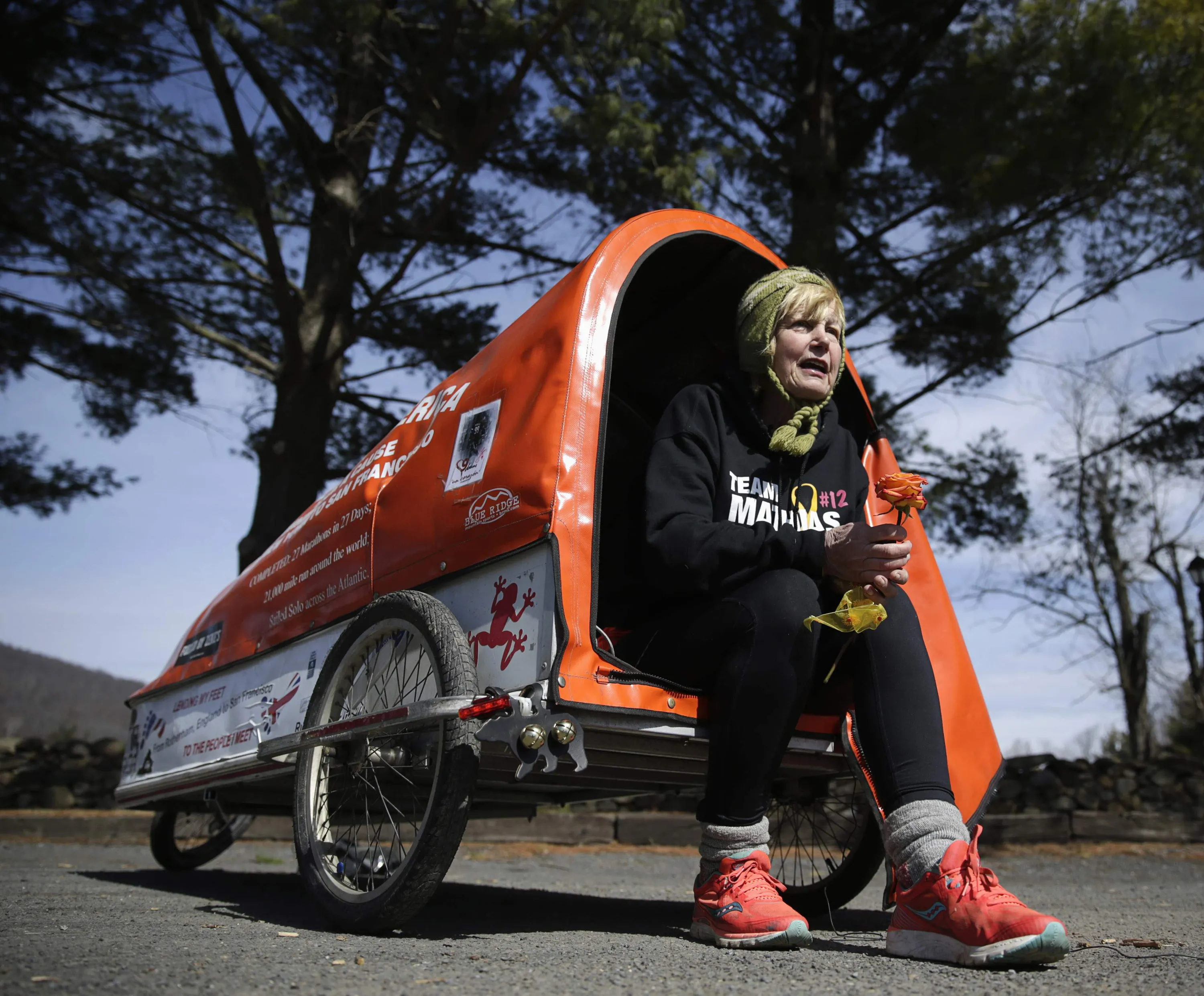 Sixty-eight year old cross-country runner Rosie Swale-Pope is interviewed while sitting in her cart, “The Icebird”, in Upperville, Virginia March 13, 2015. (Photo by Gary Cameron/Reuters)