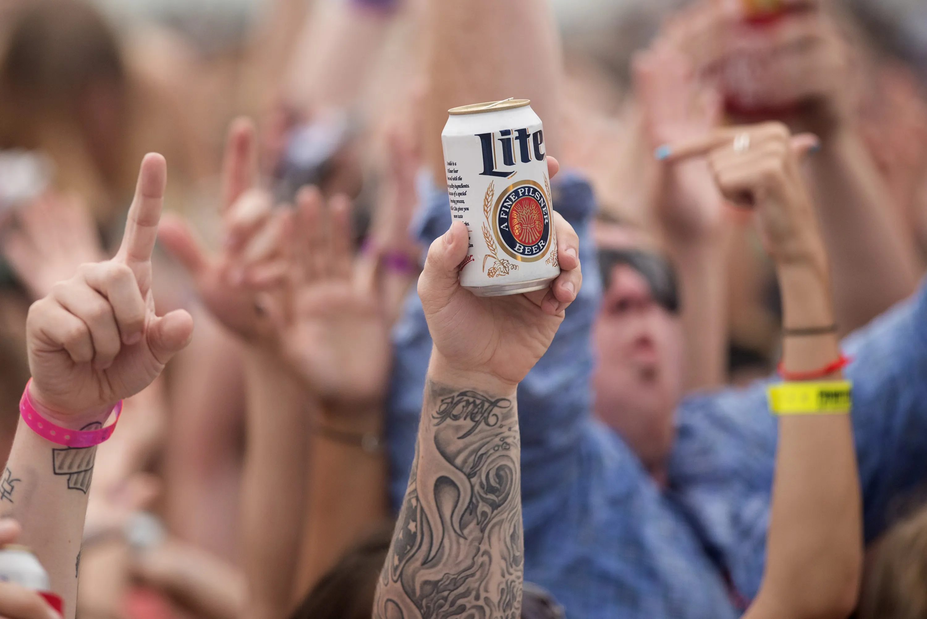People cheer at a beach concert during spring break festivities in Panama City Beach, Florida March 12, 2015. Unwilling to evict spring break, a crucial season in a community where tourism brings in more than $1 billion annually, the city has passed new rules to counter the worst excesses. Bars must stop serving alcohol at 2 a.m. in March, two hours earlier than before. Partygoers must have a valid ID to drink on the beach, and the practice of digging deep holes in the sand for drinking games and sex is banned. (Photo by Michael Spooneybarger/Reuters)