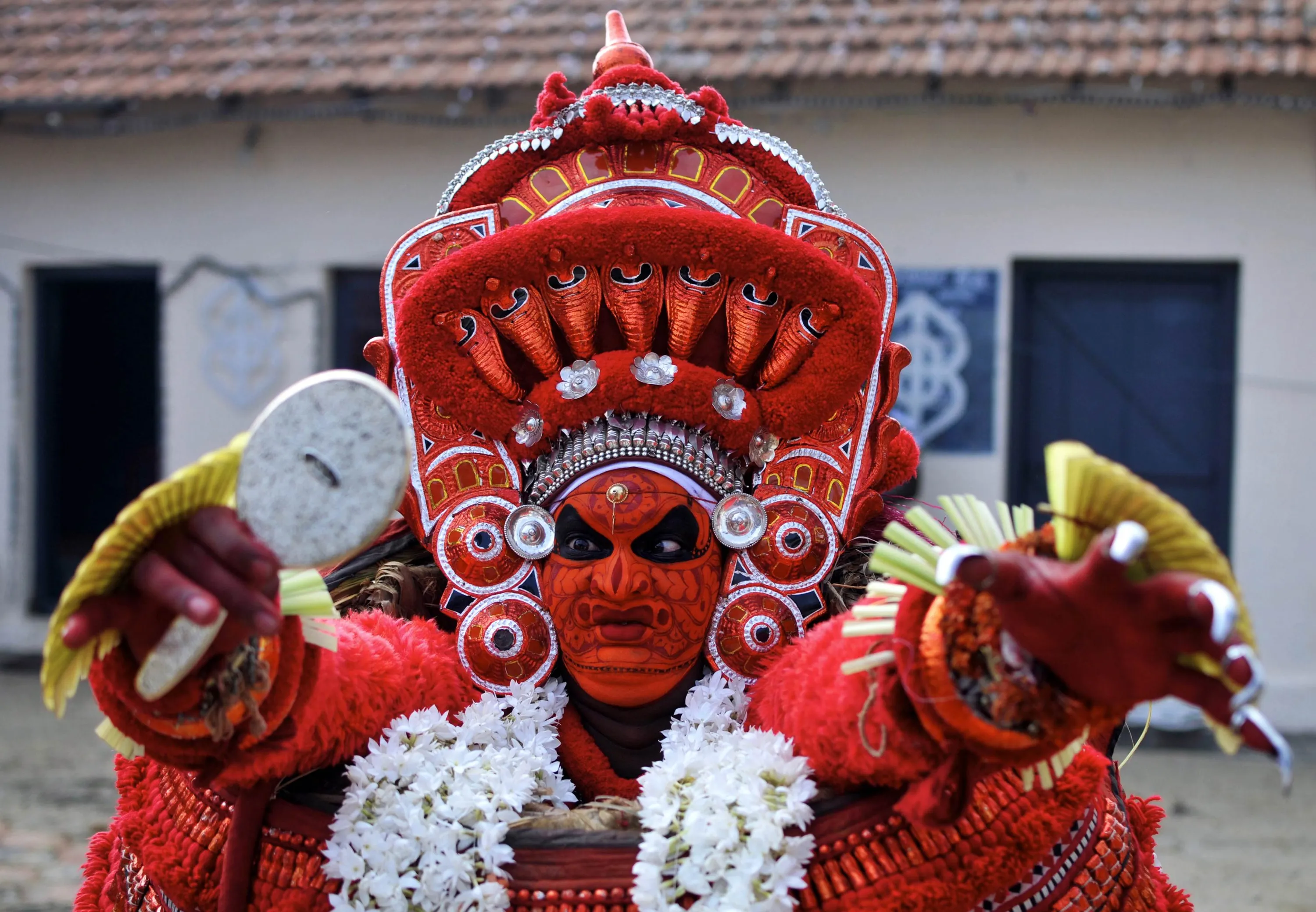 An artist dressed as Hindu god Vishnumurhty performs during the Theyyam ritual in Somwarpet town in the southern Indian state of Karnataka March 17, 2015. (Photo by Abhishek N. Chinnappa/Reuters)
